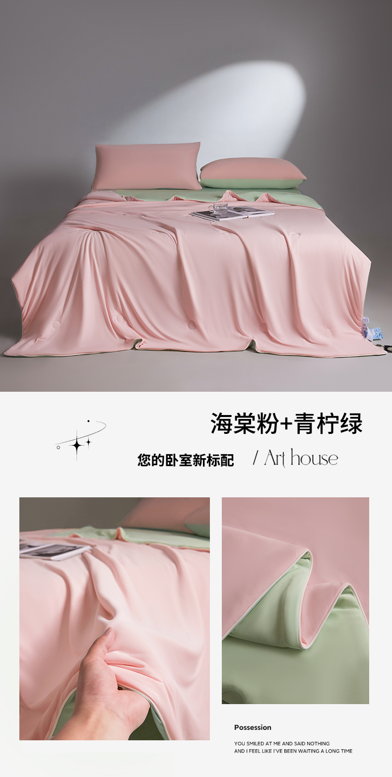 • 91家纺网 家纺一手货源 找家纺 雯豆家纺 2026春夏新款锦氨夏被空调被子被芯夏季凉感被小冰皮薄被子夏被夏凉被空调被 小冰皮-海棠粉+青柠绿