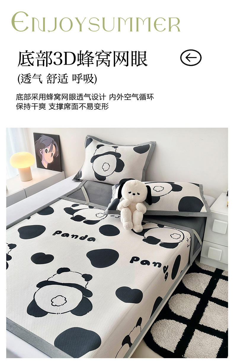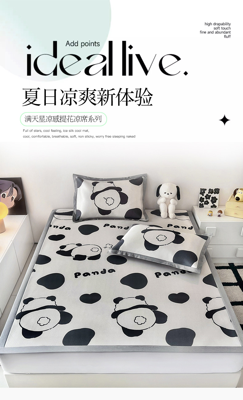 倾慕家纺 2026新款A类满天星提花凉感凉席系列 PP熊猫