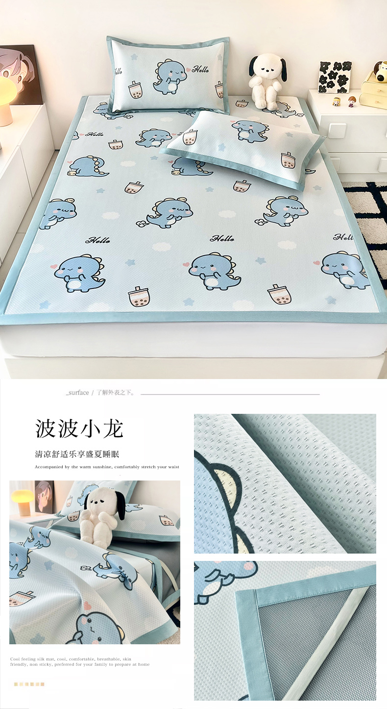 (总)倾慕家纺 2026新款A类满天星提花凉感凉席系列,缤纷兔,波波小龙,波浪彩龙,哈皮龙,开心兔,蓝色爱恋,乐动猫咪,律动小球,森林龙宝宝,条纹狗狗,小猫侠,小森林,叶小兔,PP熊猫