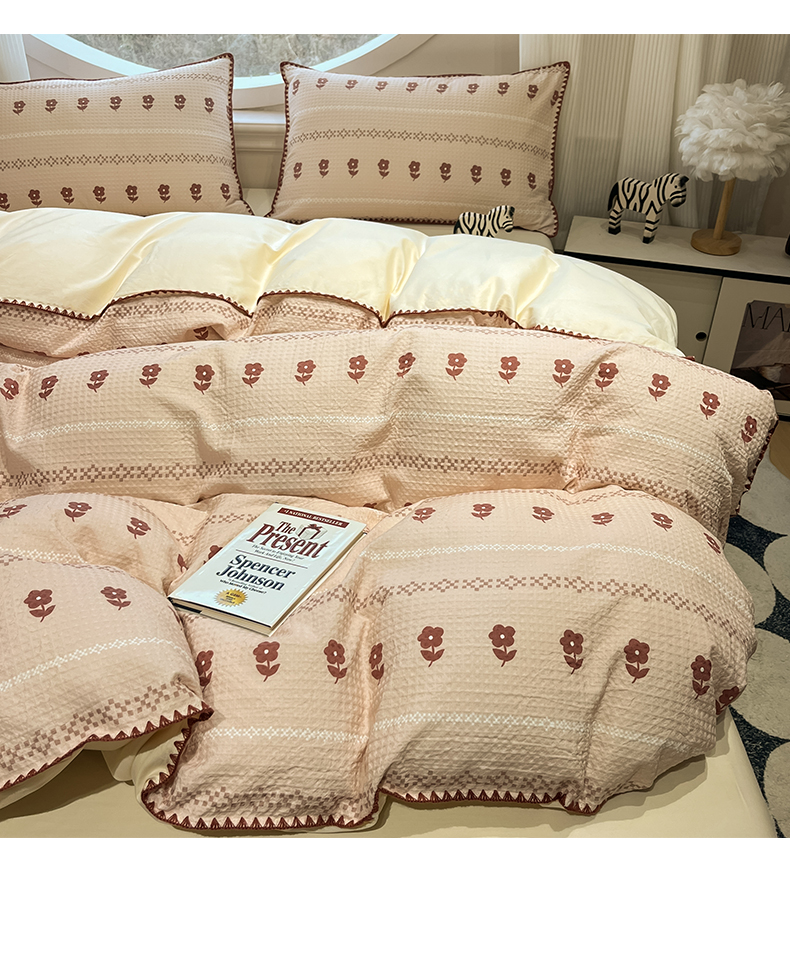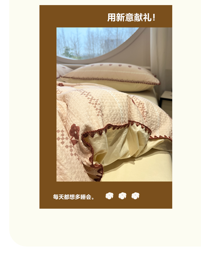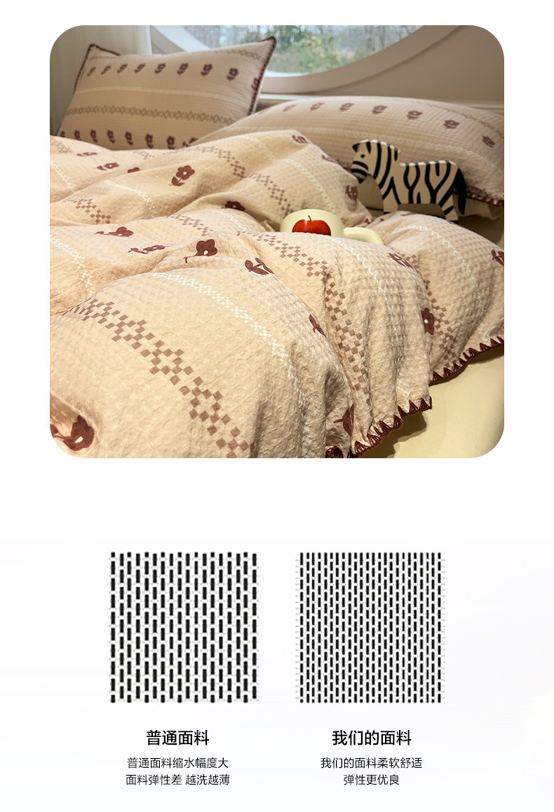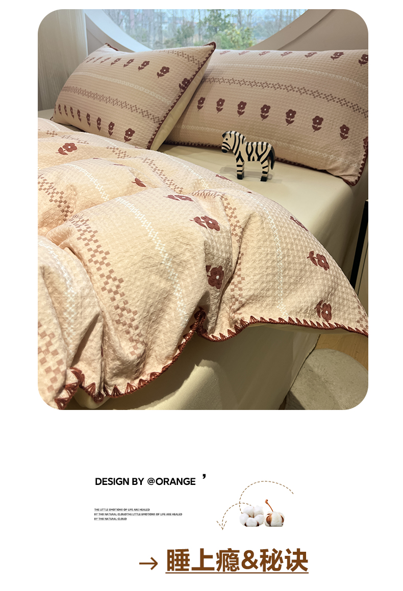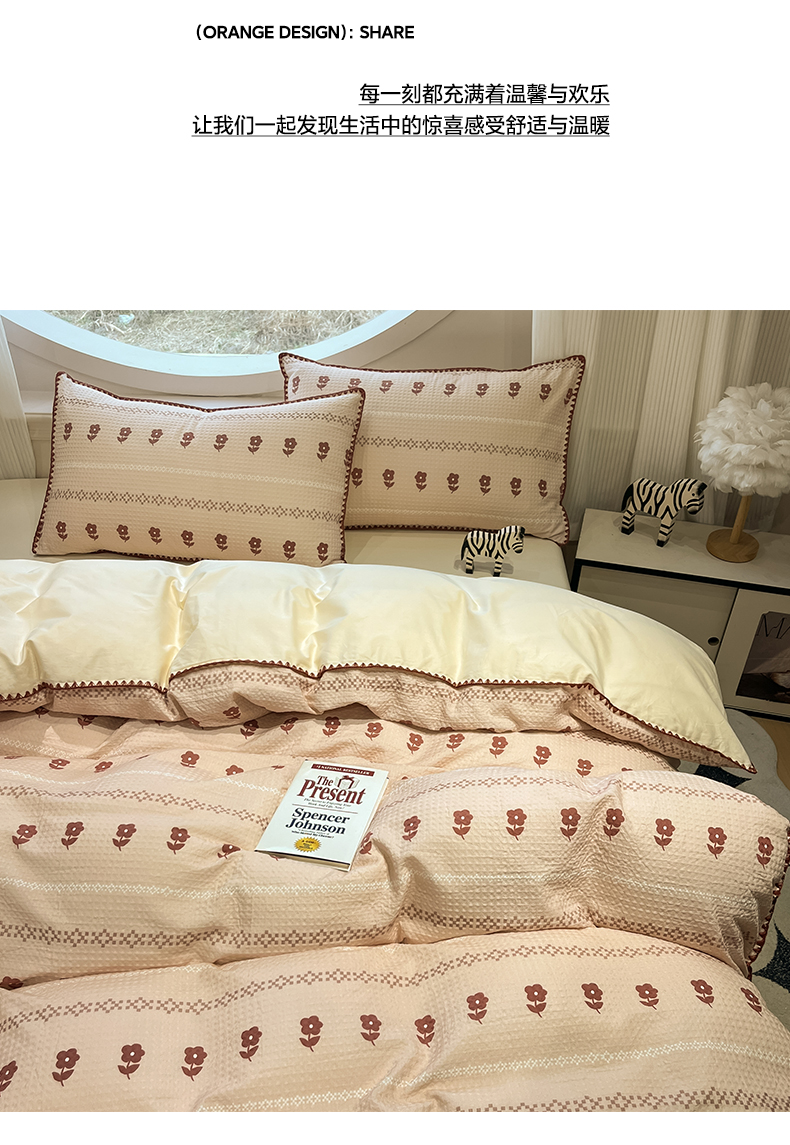 当前位置: 91家纺网 > 商品网购 > 床品套件 > 四件套 > 全棉普通四件套 > 如一 2026春夏新款全棉纯棉华夫格印花三角针工艺四件套 花花-米