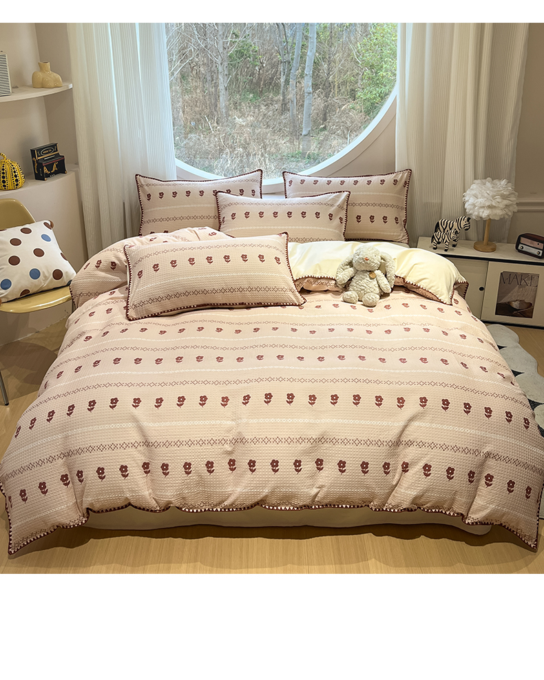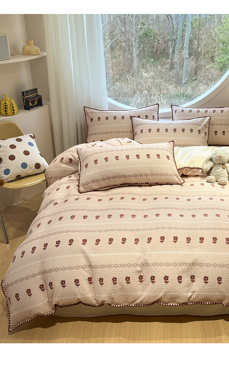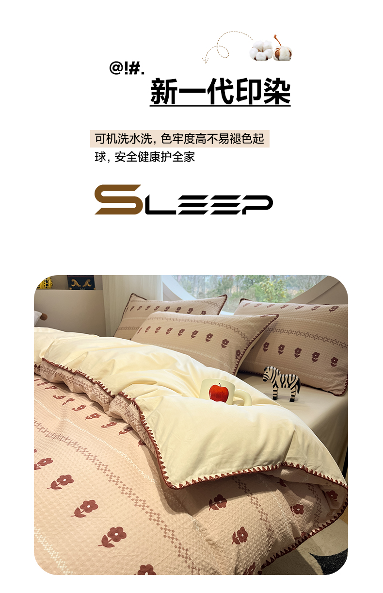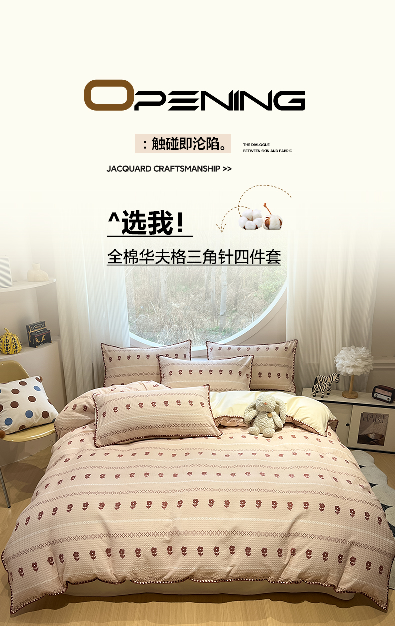 当前位置: 91家纺网 > 商品网购 > 床品套件 > 四件套 > 全棉普通四件套 > 如一 2026春夏新款全棉纯棉华夫格印花三角针工艺四件套 花花-米
