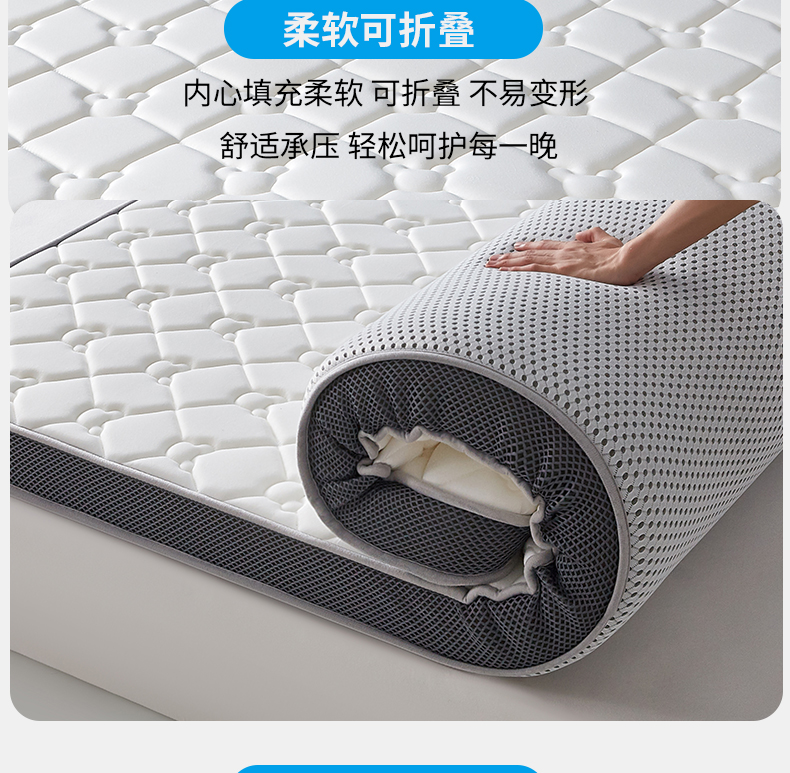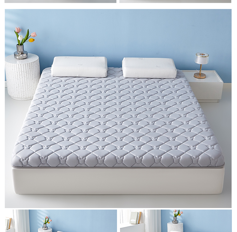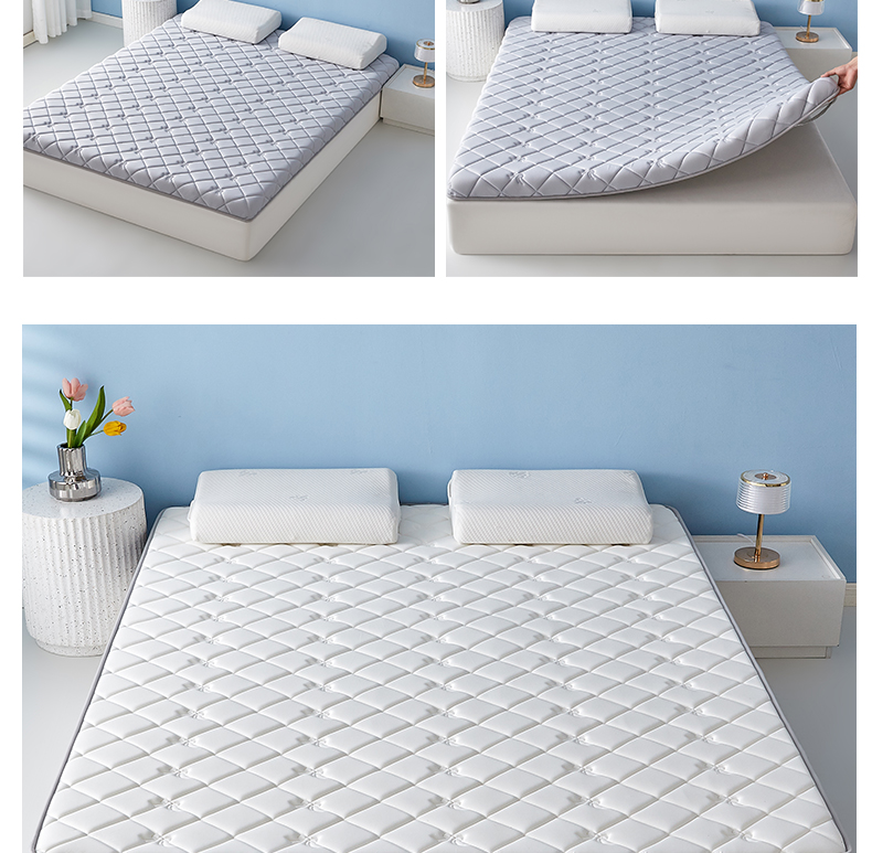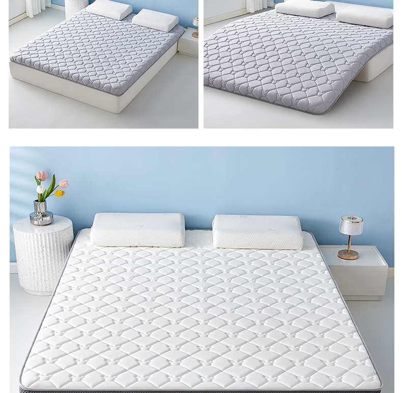 (总)优莱床垫 2024新款牛奶绒学生床垫,立体白,法莱绒灰,法莱绒蓝,如意叶灰