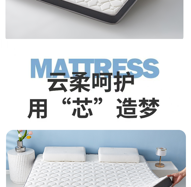 (总)优莱床垫 2026新款乳胶抗压棉玫瑰单边床垫,玫瑰白单边,玫瑰灰单边,玫瑰蓝单边