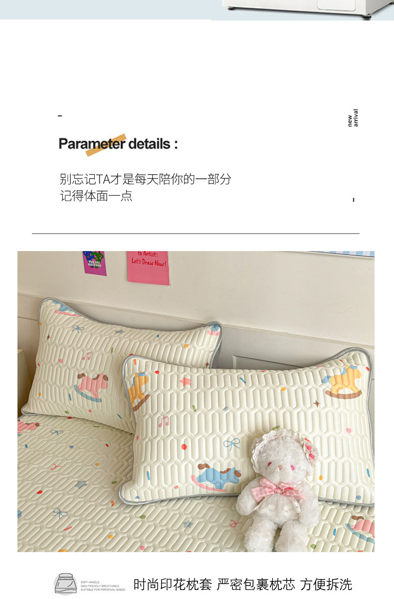 商品名称:柒月家居 2026新款小清新乳胶凉席三件套 彩色木马
