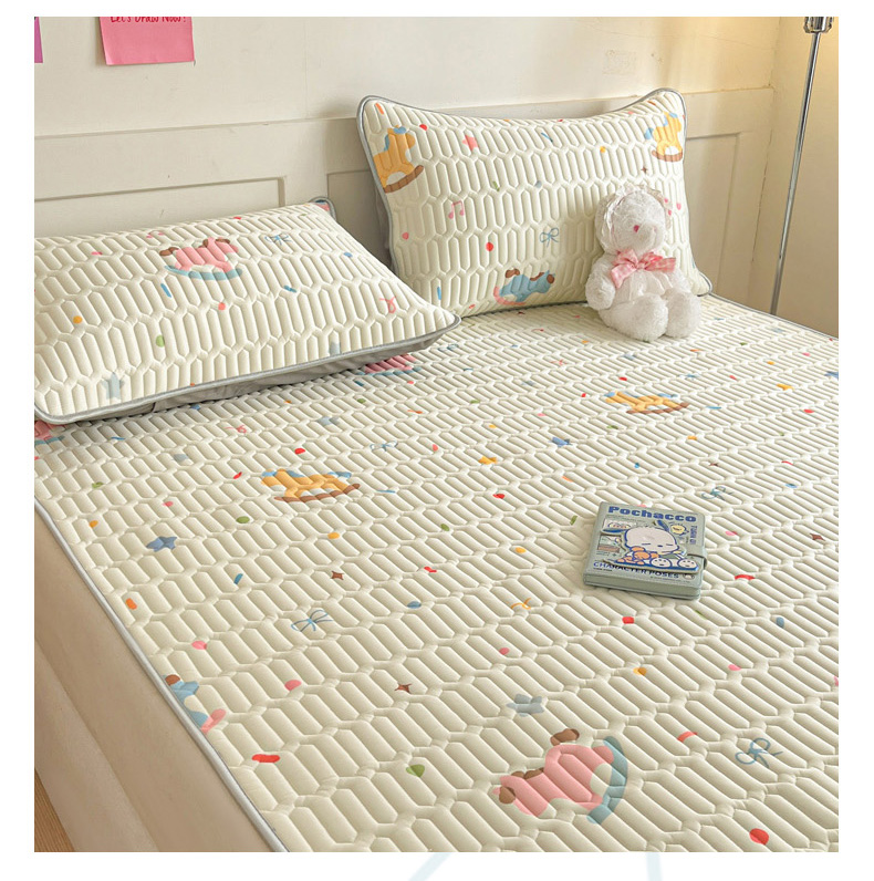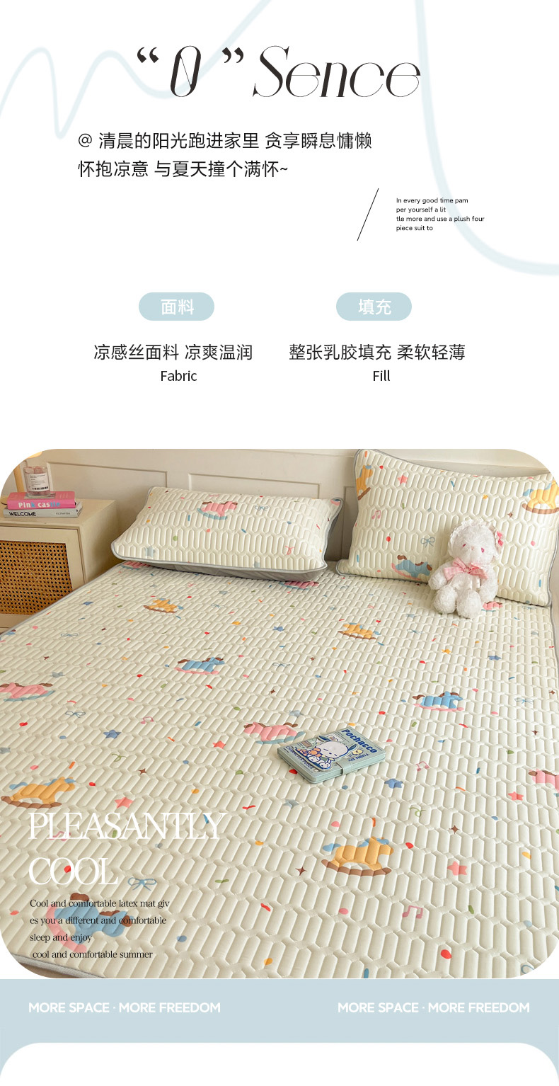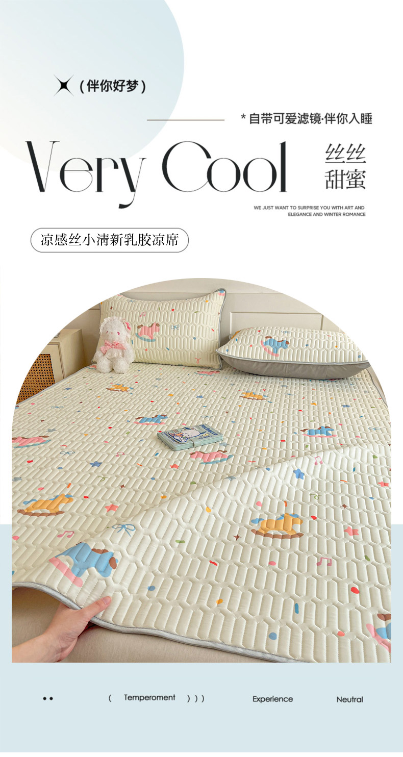 柒月家居 2026新款小清新乳胶凉席三件套 彩色木马