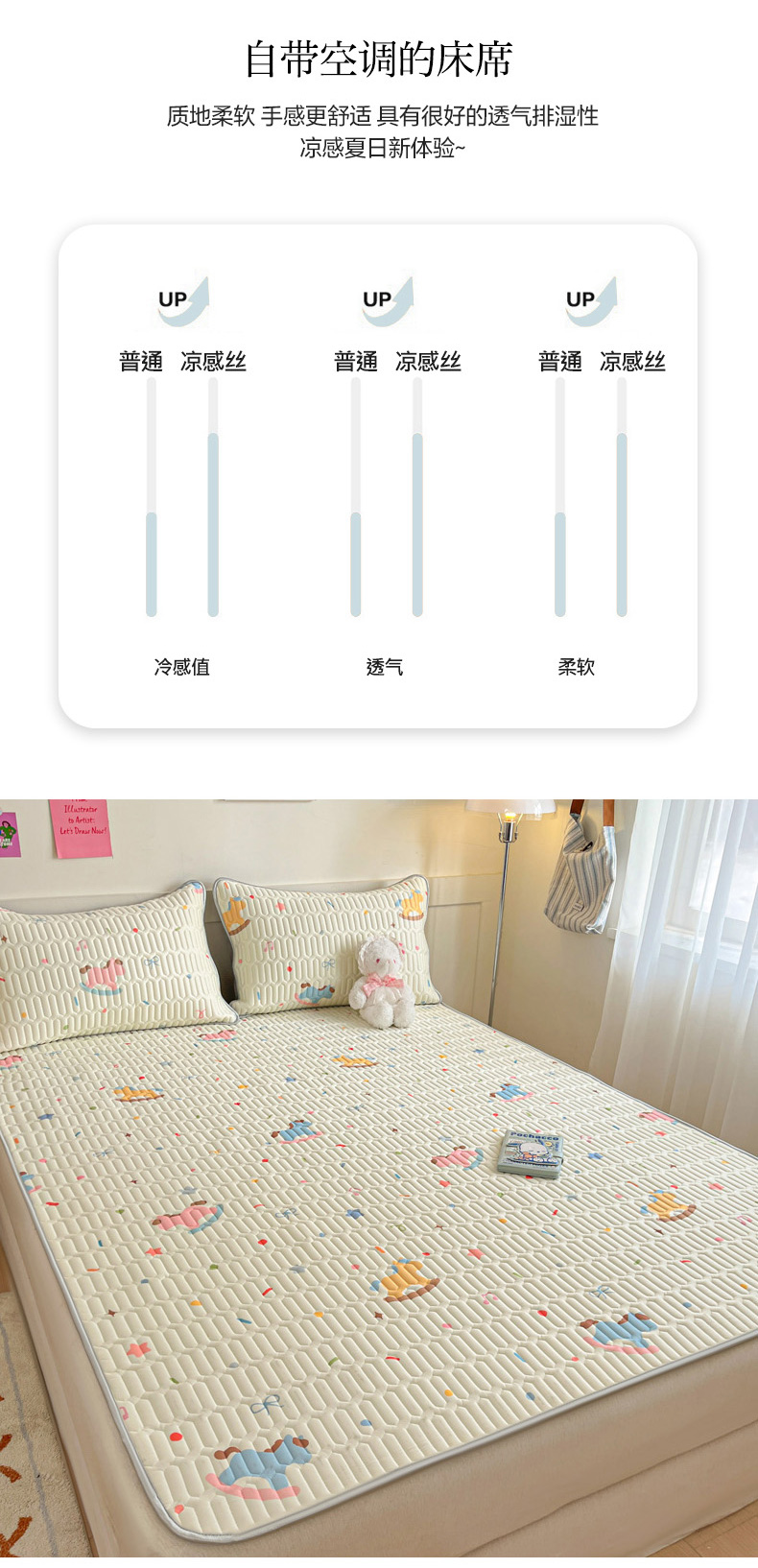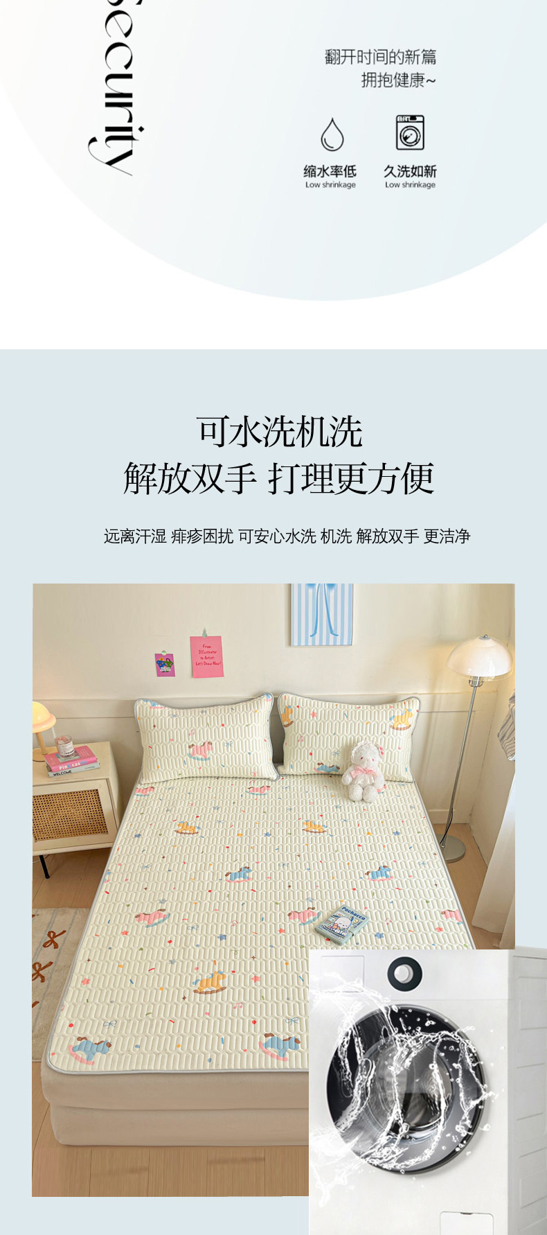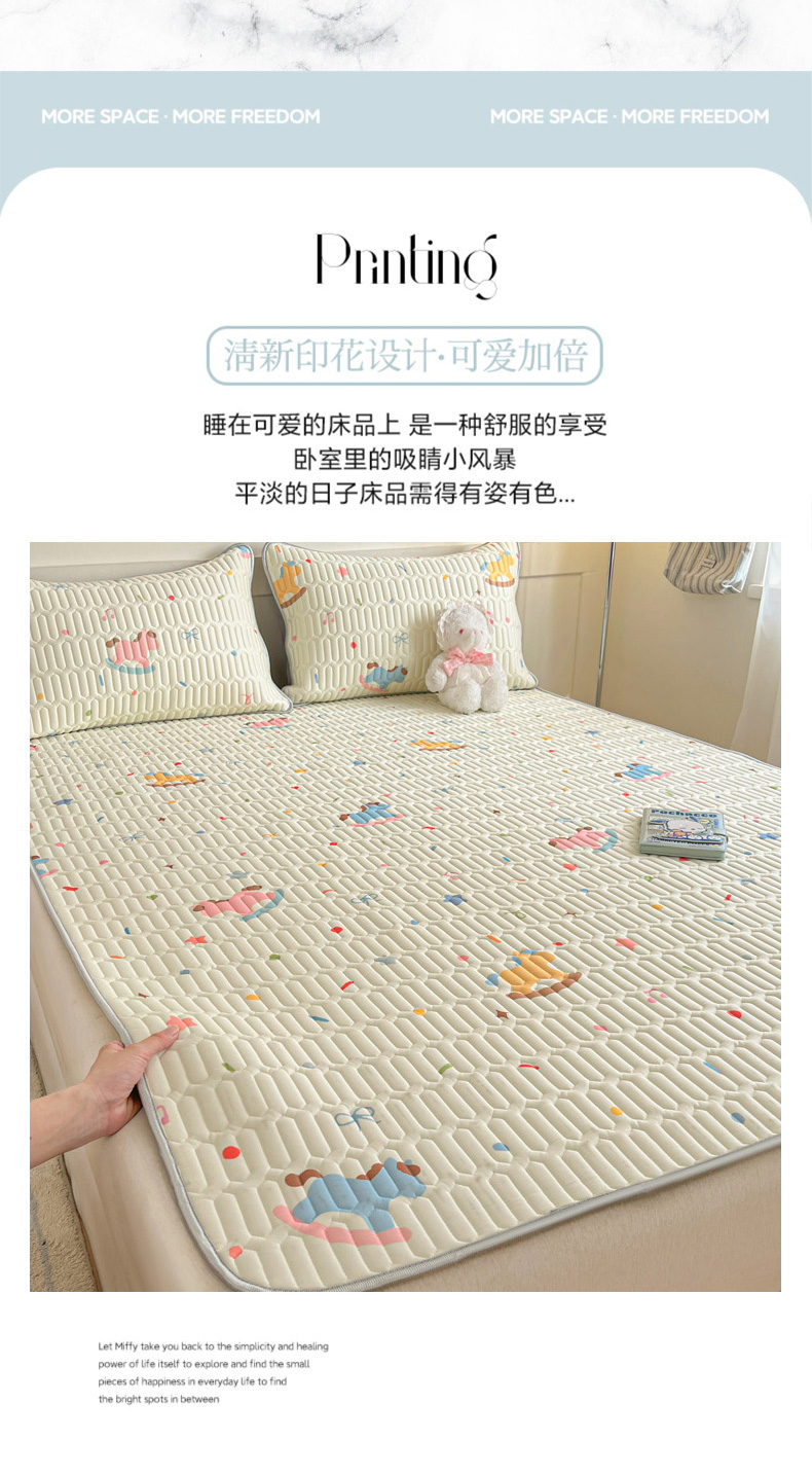 柒月家居 2026新款小清新乳胶凉席三件套 彩色木马