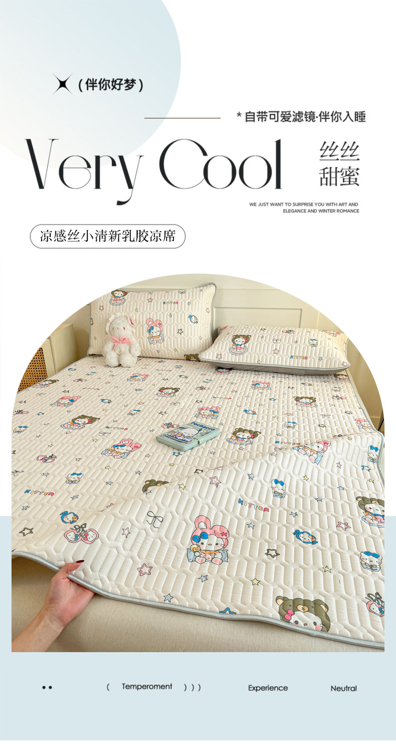 柒月家居 2026新款小清新乳胶凉席三件套 甜酷星兔