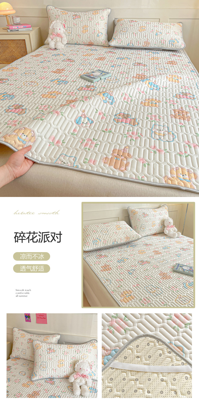 (总)柒月家居 2025新款小清新乳胶凉席夏被套件,爱心草莓,字母小熊,爱心小熊,粉色猫咪,格调,好伙伴,花季,萌宠派对,碎花小猫,星星腊肠狗,星星月亮