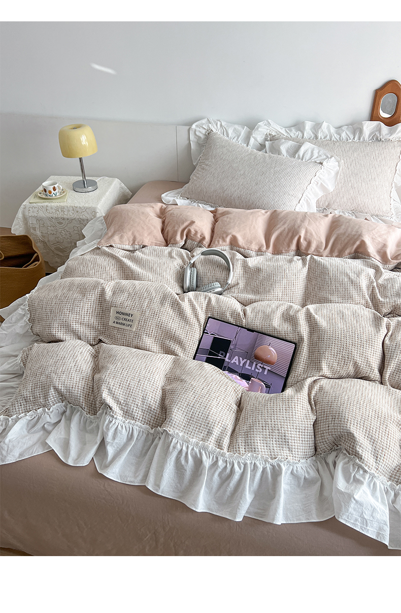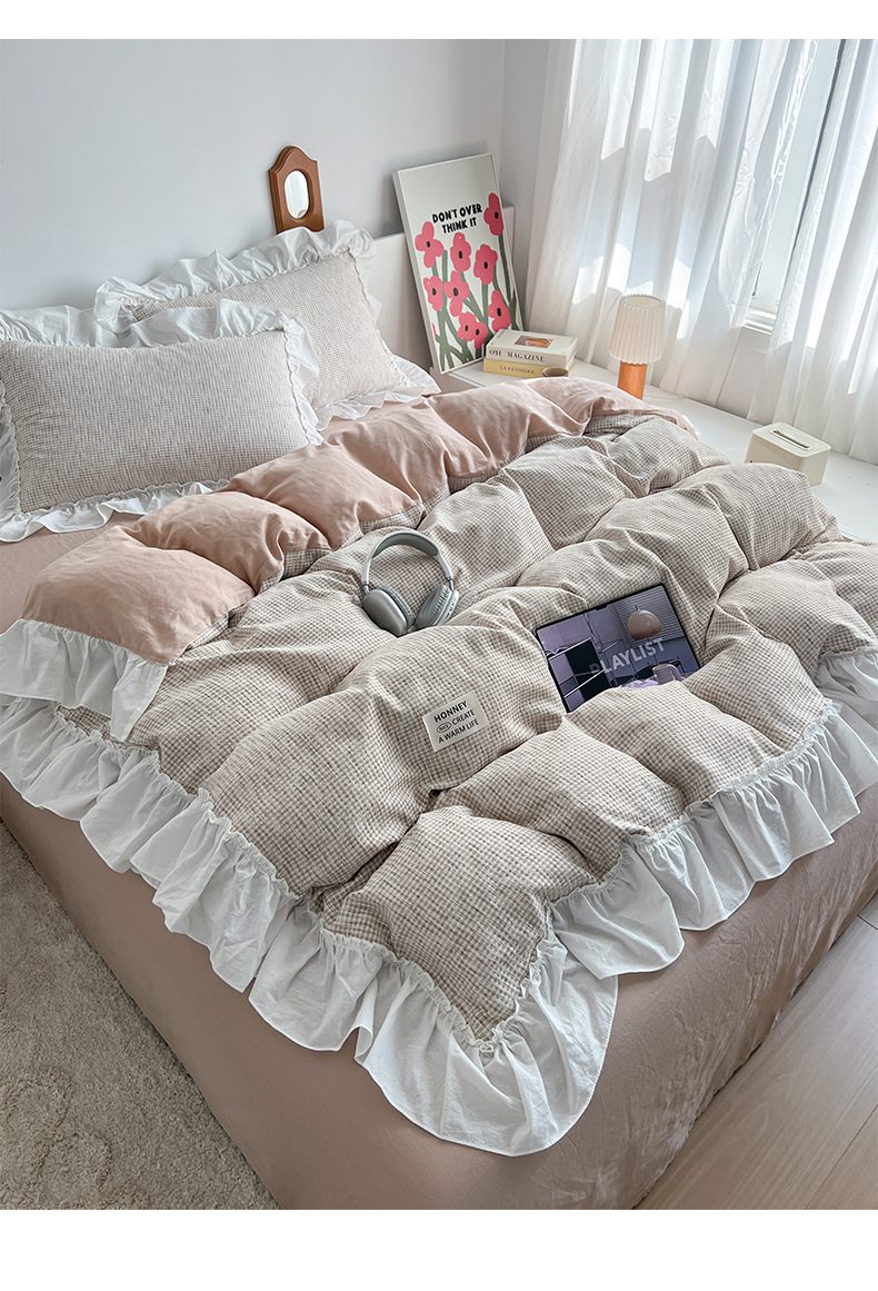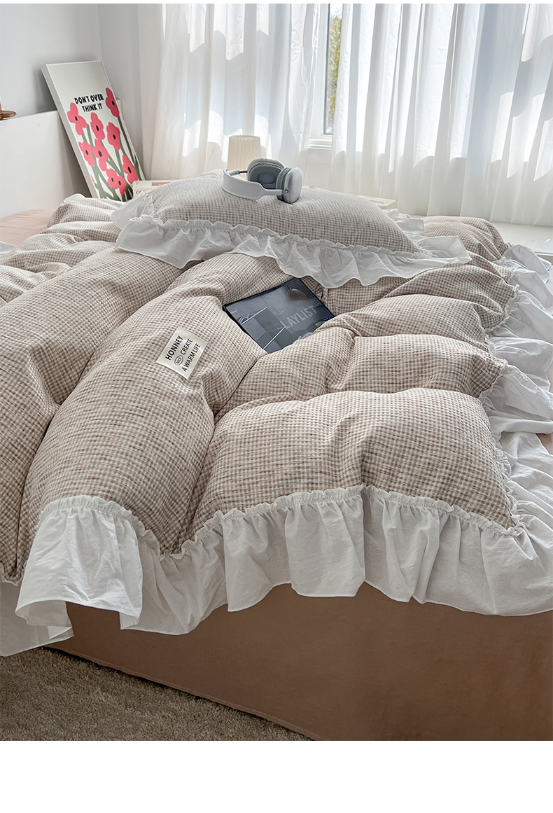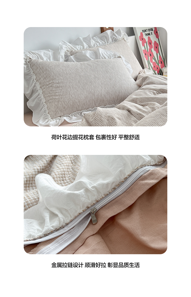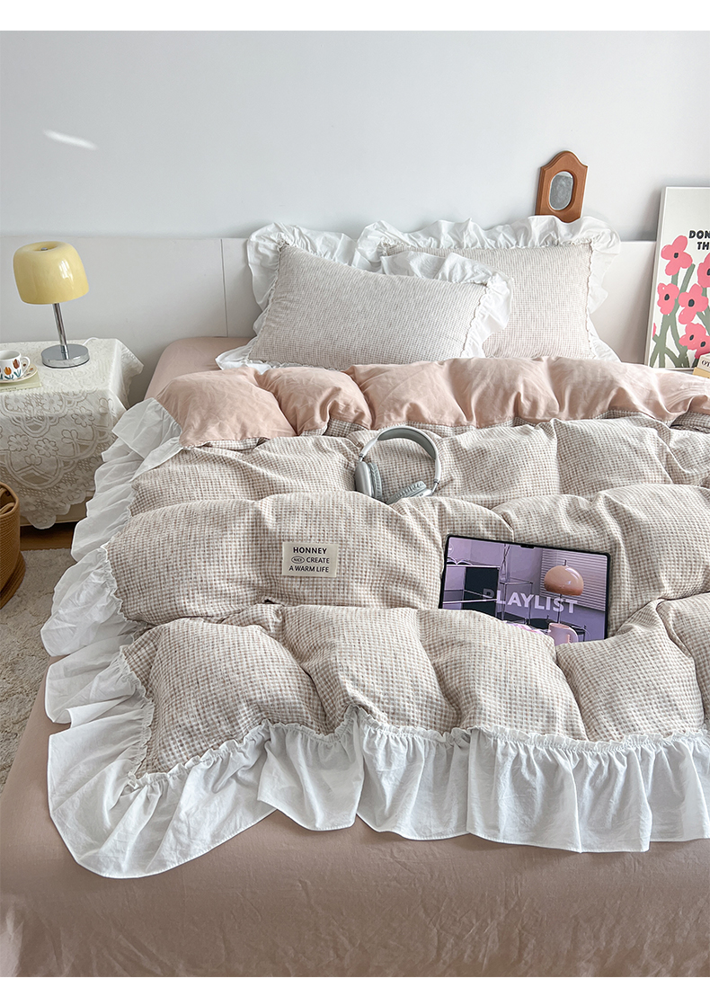 当前位置: 91家纺网 > 商品网购 > 床品套件 > 四件套 > 其它四件套 > 晨曦家纺 2026新款荷叶花边雪尼尔提花四件套可水洗棉四件套少女风 奶茶华夫