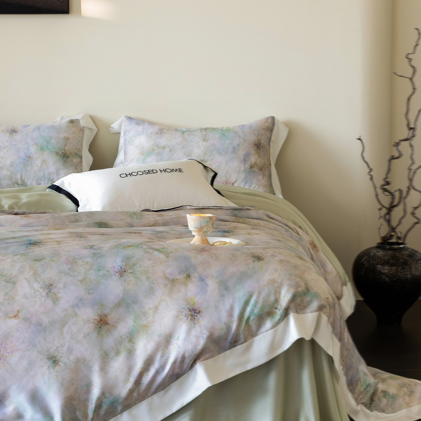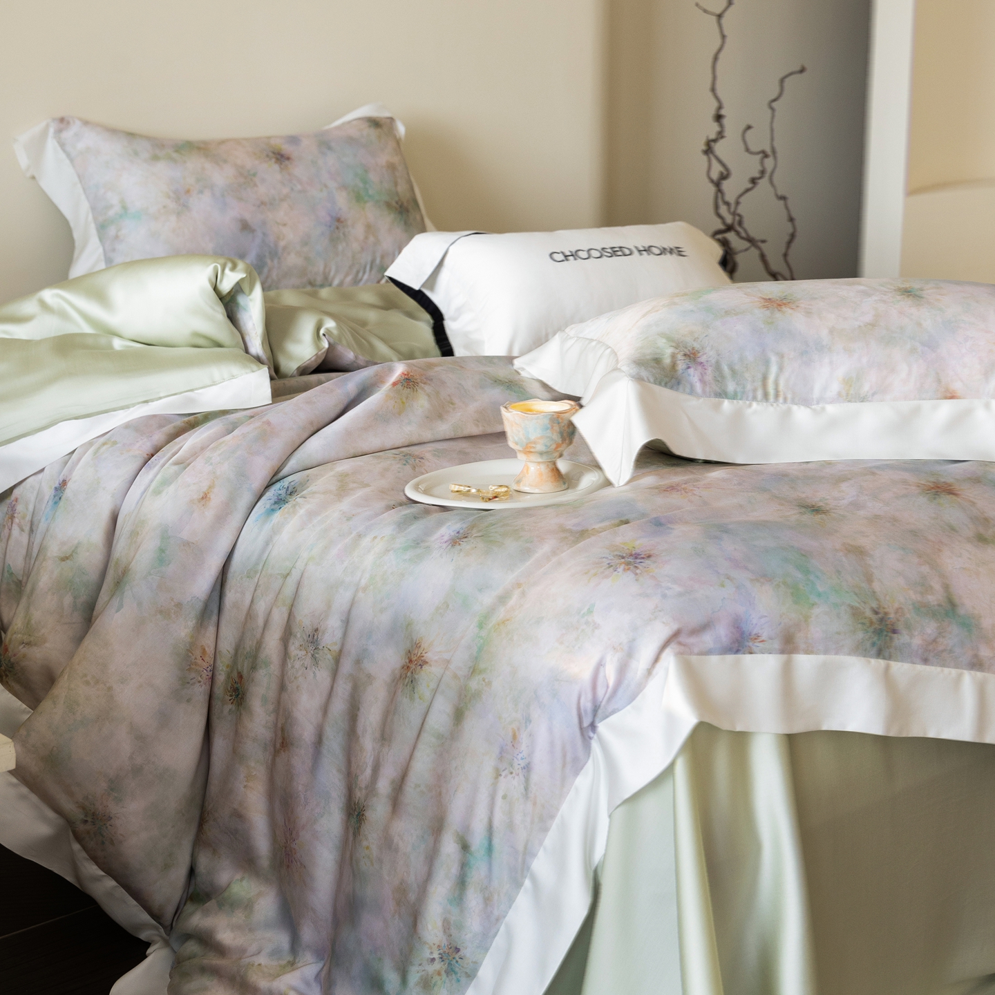 初拾 2026新款60支兰精天丝数码印花系列四件套 青提薄荷(会员减20 ,控价:日常 券后不低于398 元)