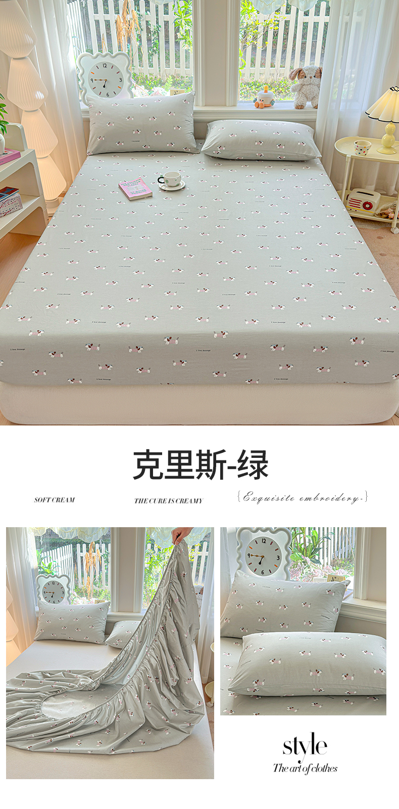 • 91家纺网 家纺一手货源 找家纺 优眠坊 2026春夏新款全棉印花卡通单床笠 克里斯-绿
