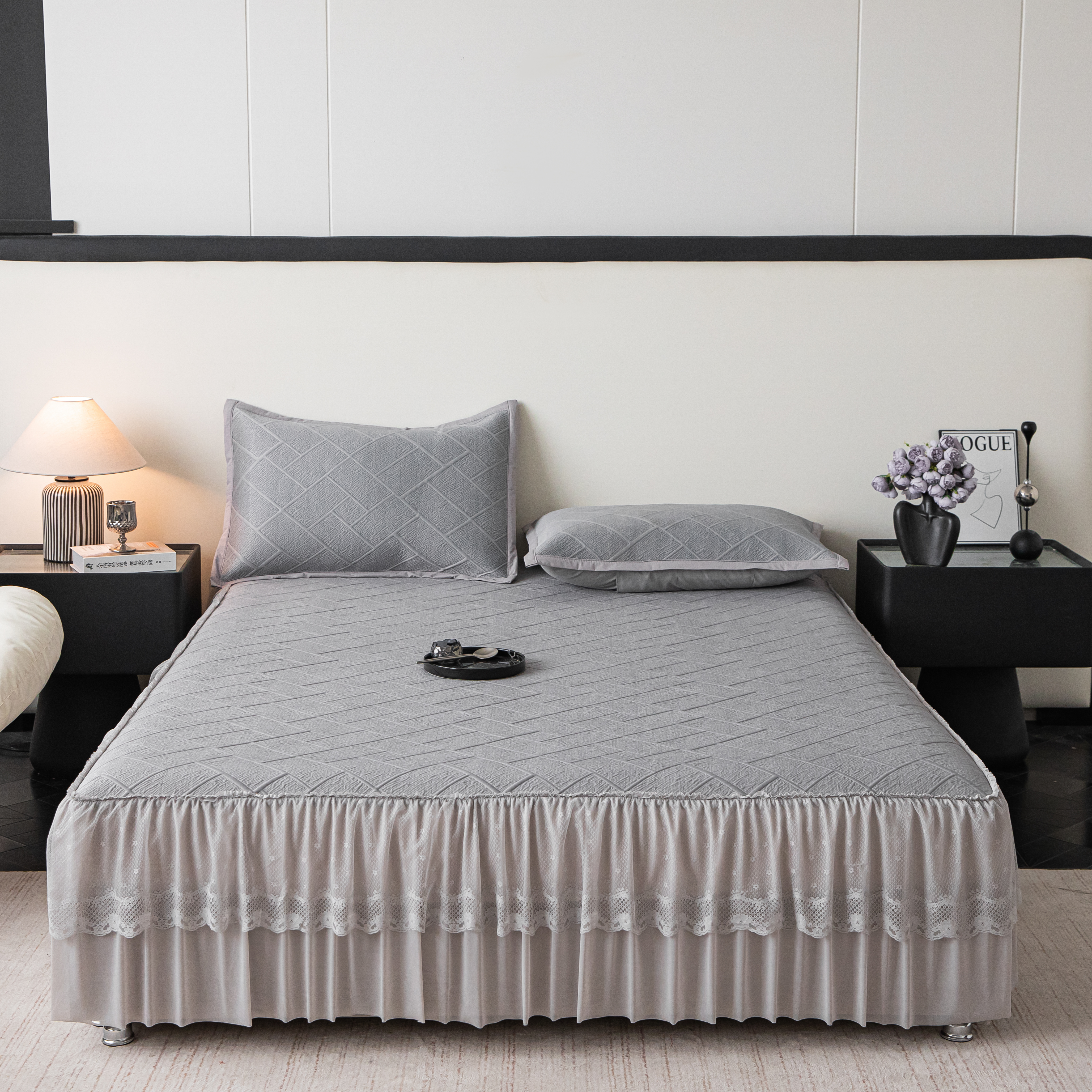 栩裕纺织 2026新款清纱菱纹床裙款豆豆席凉席 高级灰