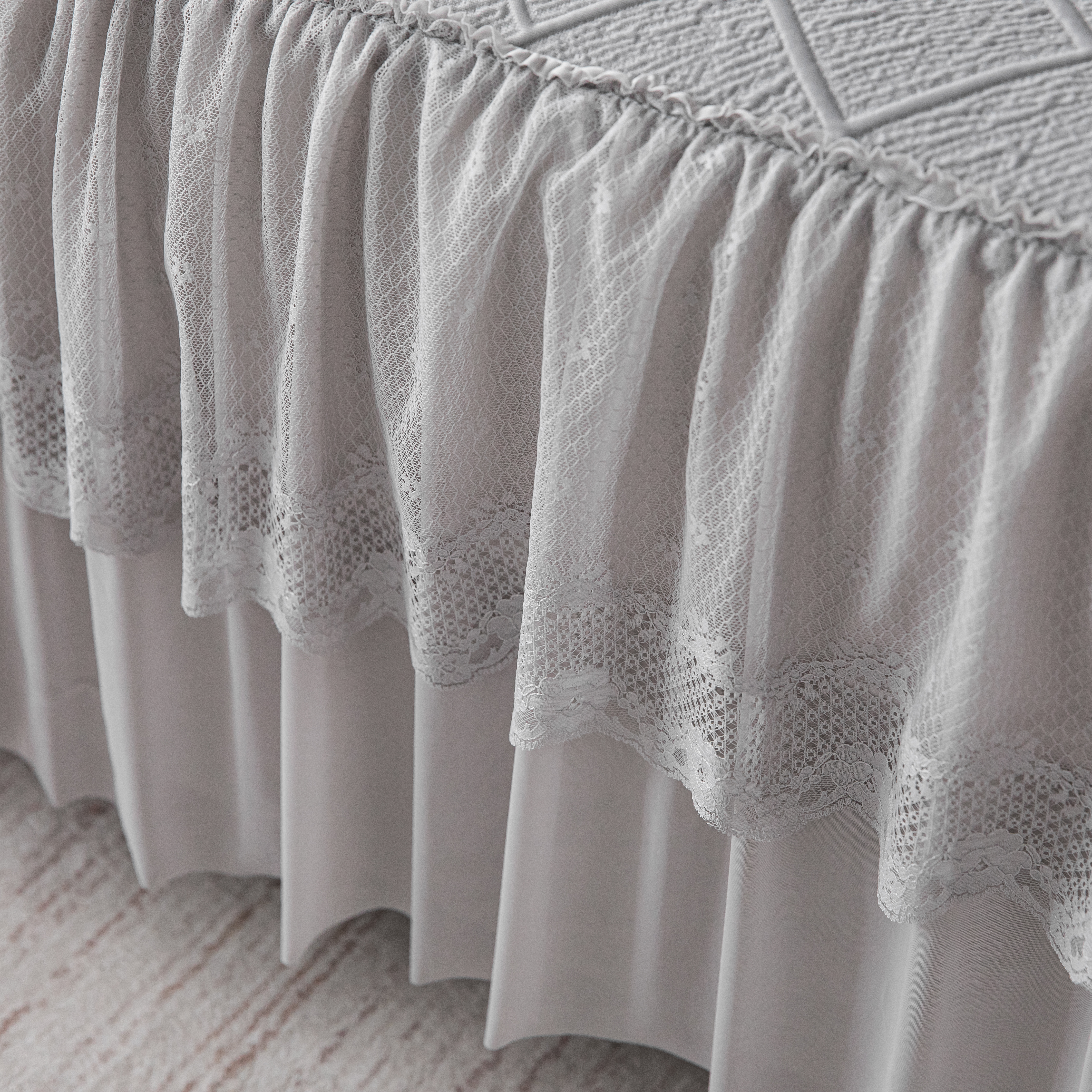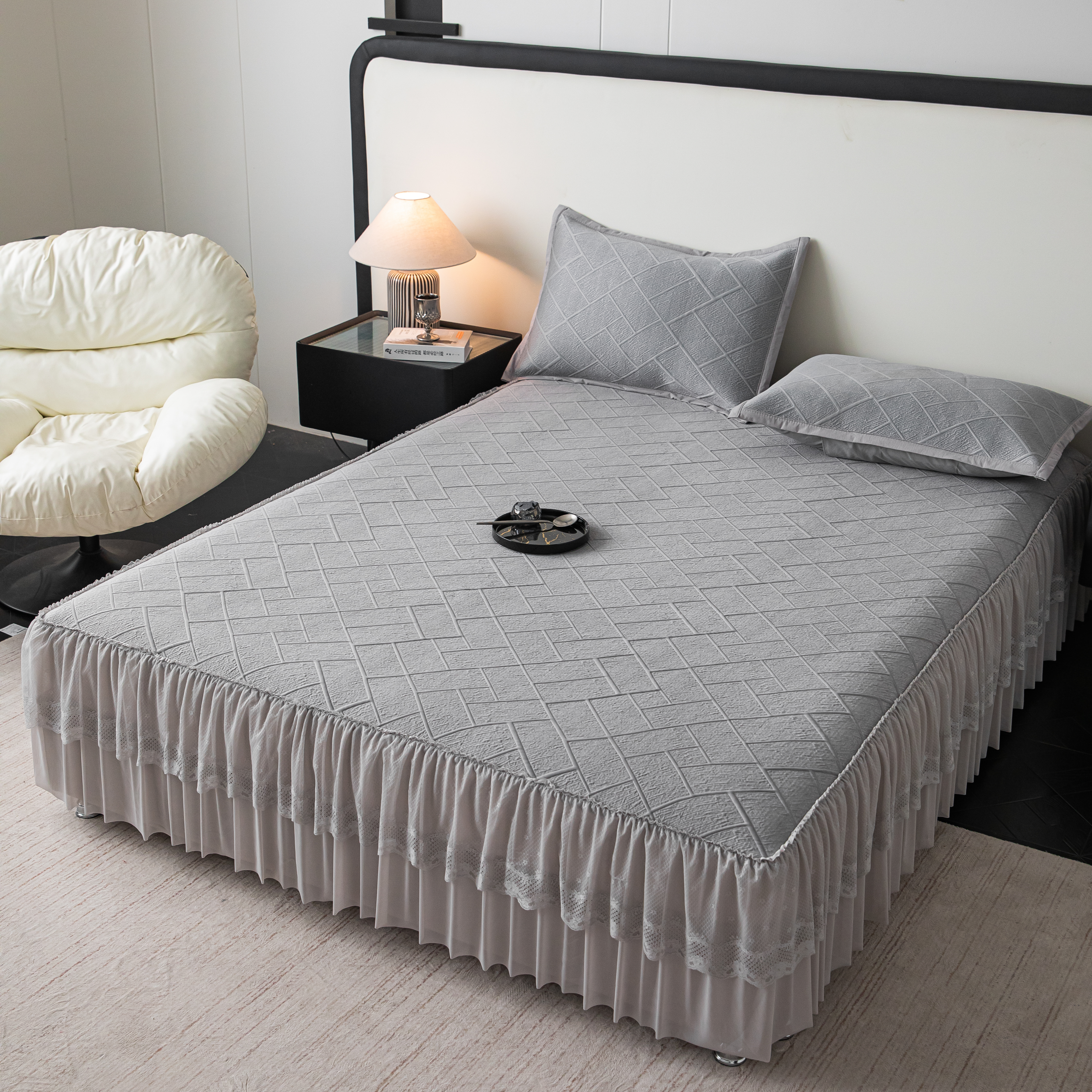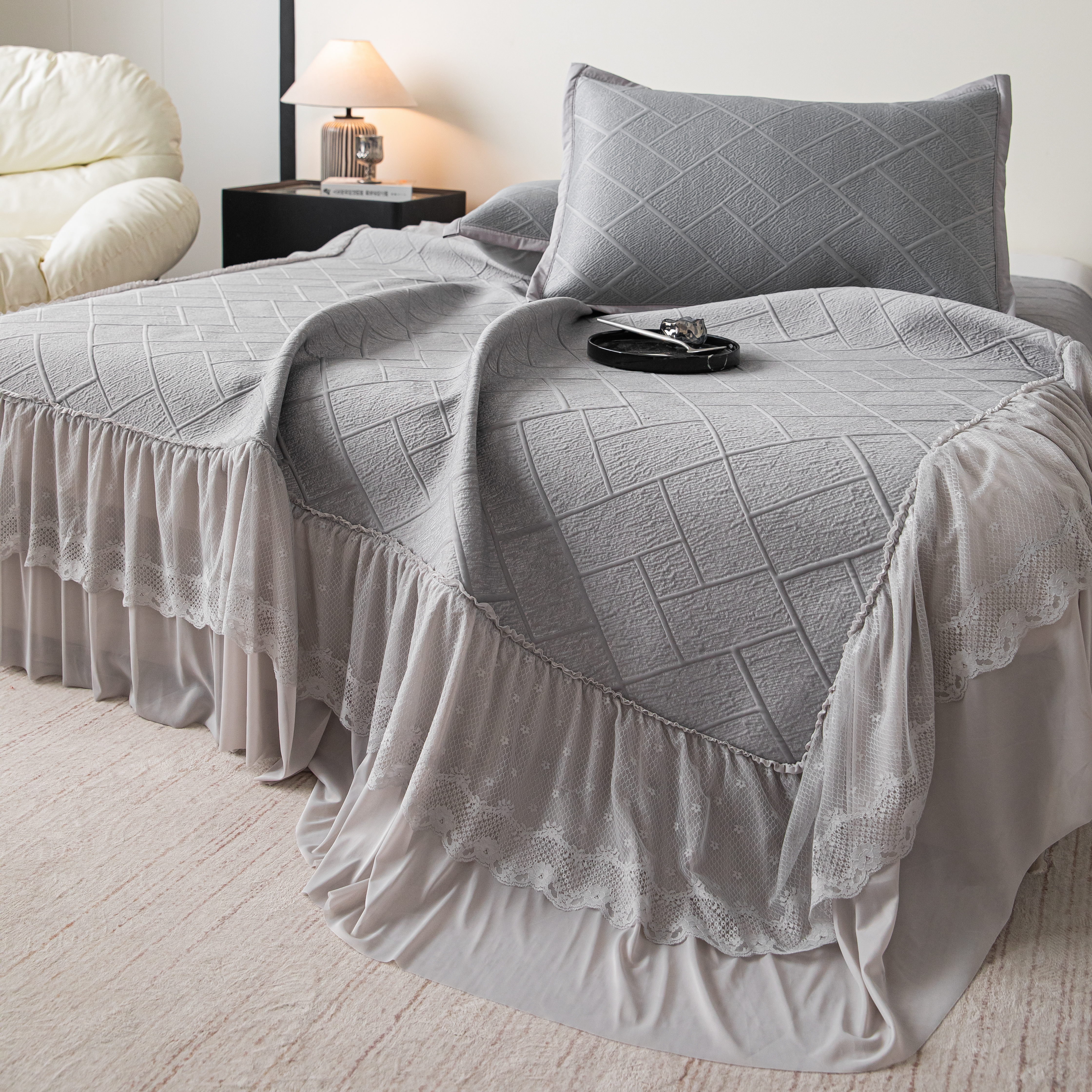 (总)栩裕纺织 2026新款全棉双层纱棉花边榻榻米炕盖款,波点粉,波点灰,波点绿,波点米,波点杏,波点紫,组合图仅供参考
