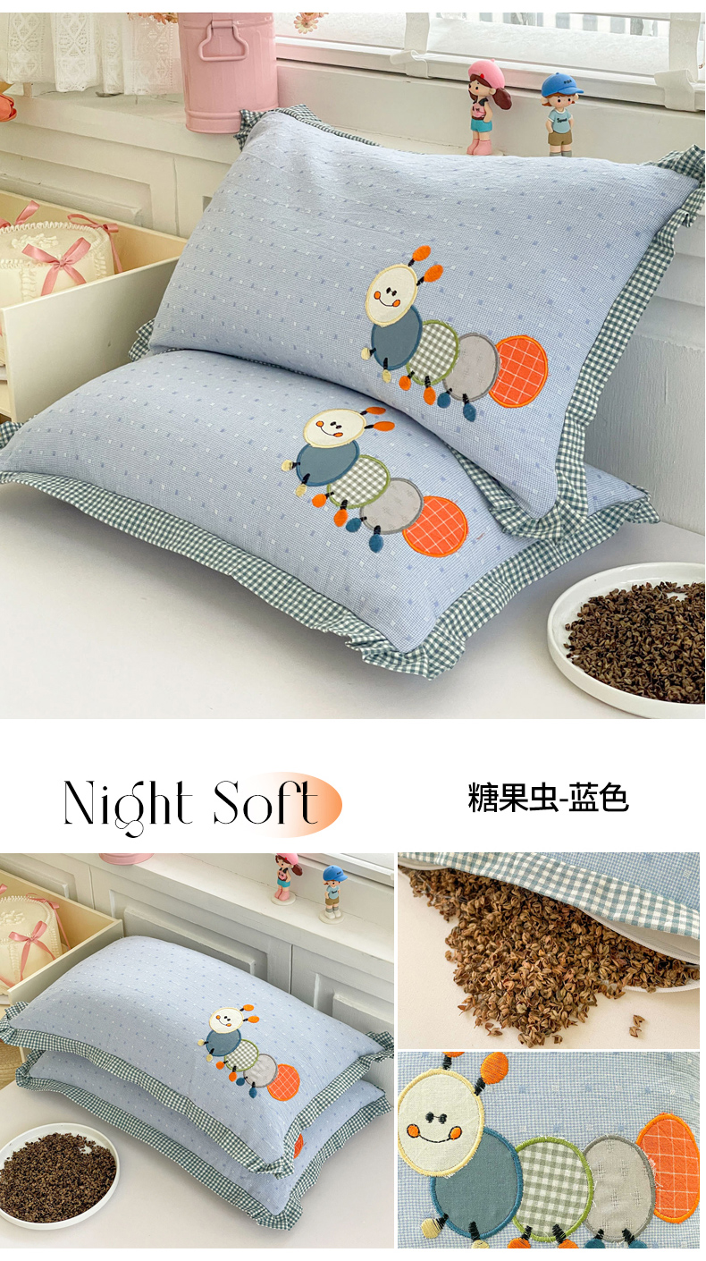 (总)梦叶草 2026新款全棉色织荞麦枕糖果虫荞麦枕枕头枕芯,糖果虫-咖色,糖果虫-粉色,糖果虫-蓝色,组合图仅供展示不可下单,糖果虫-绿色,糖果虫-米黄