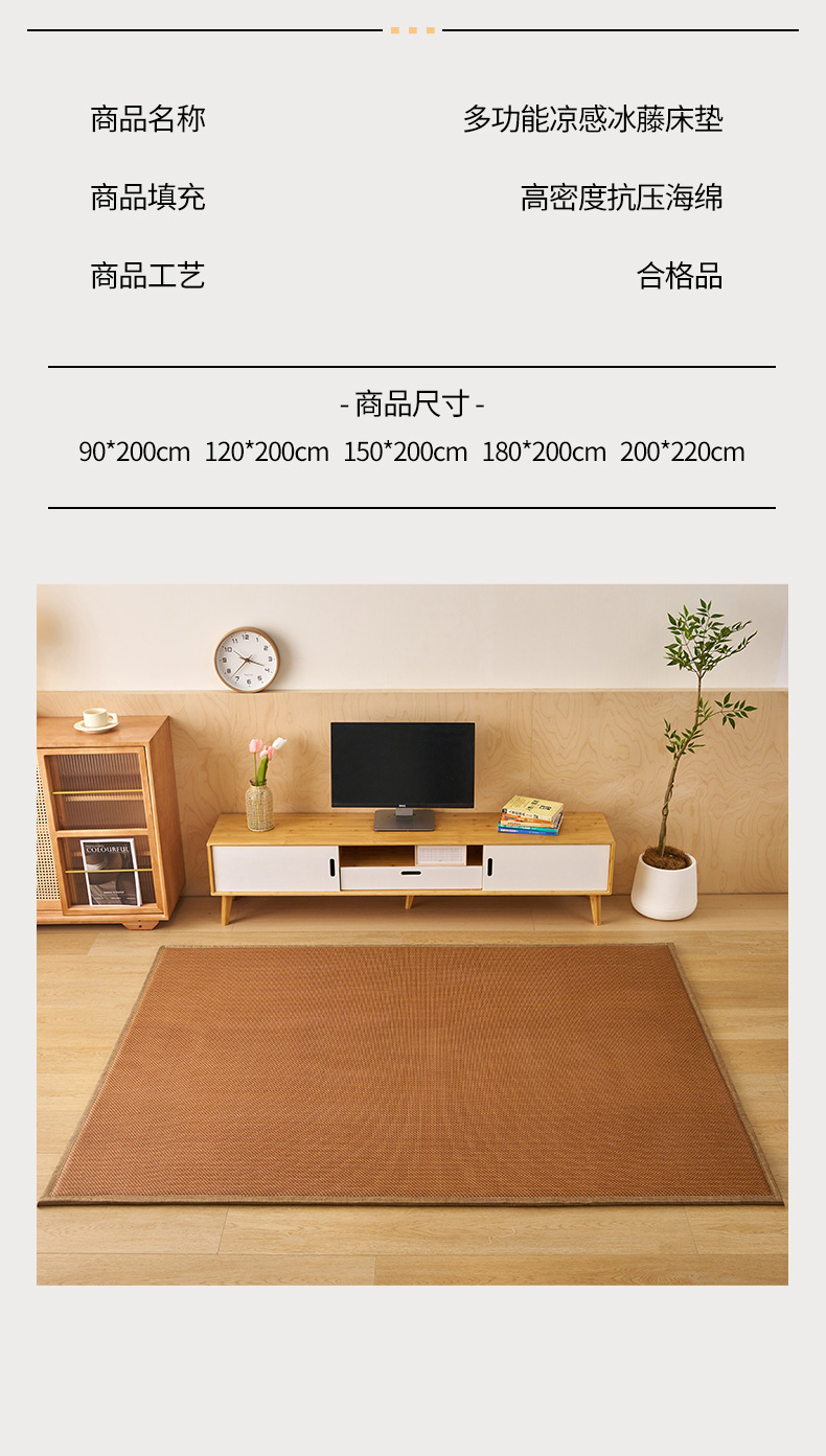 • 91家纺网 家纺一手货源 找家纺 畅畅家纺 2026新款多功能亲肤舒适凉感冰藤床垫藤席地垫-厚度1.5cm 节节高