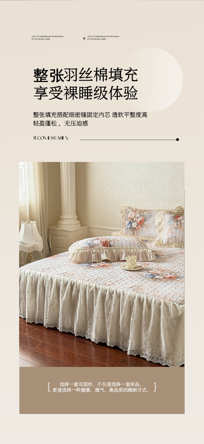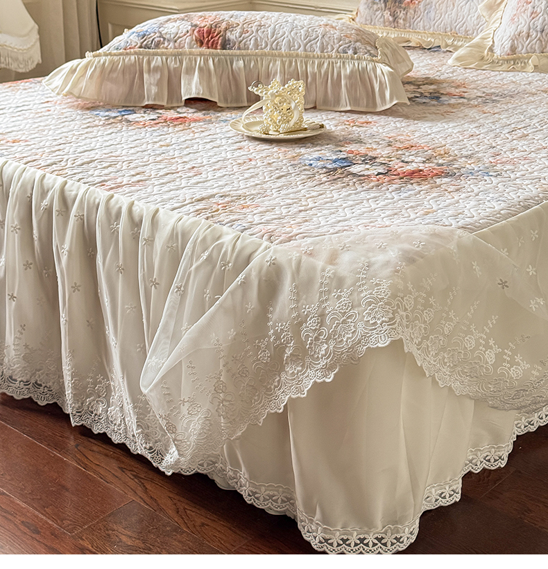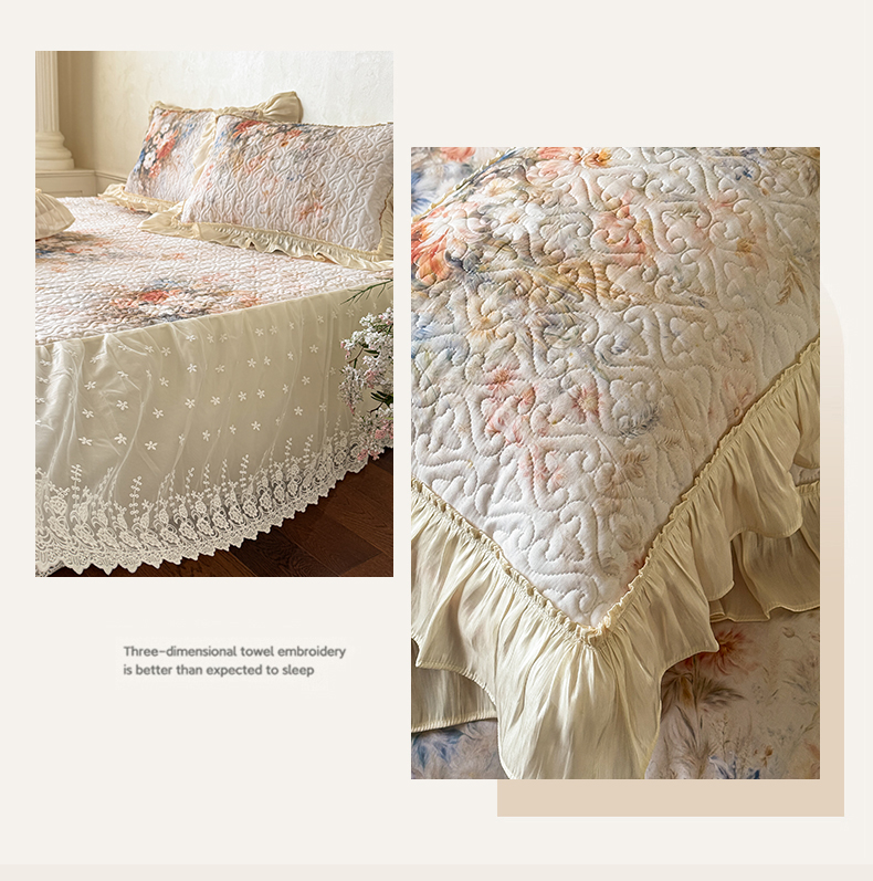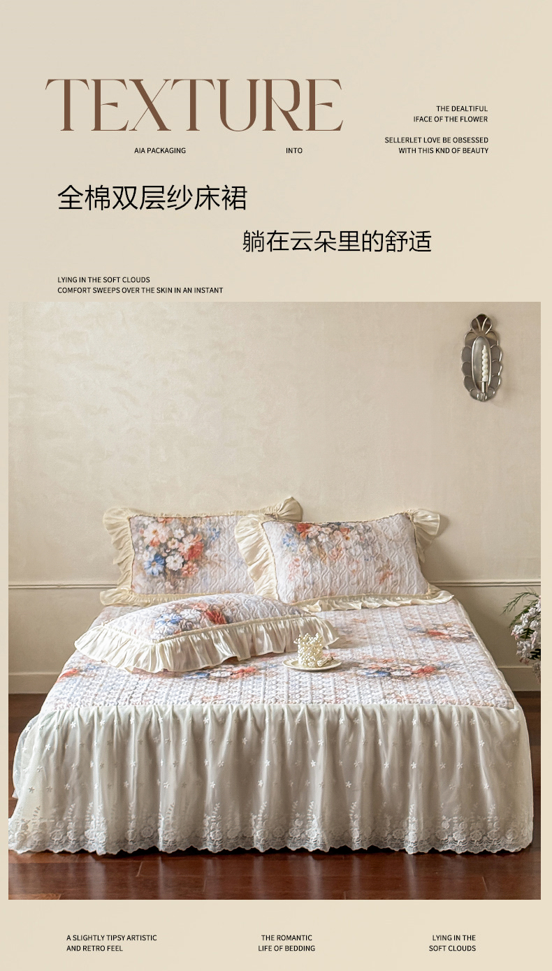 花香四季家纺 2026新款全棉双层纱床裙三件套 半夏