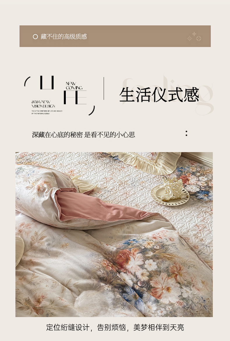 • 91家纺网 家纺一手货源 找家纺 (总)花香四季家纺 2026新款亲肤天丝棉四件套,罗宾咖,少女粉,奶油白