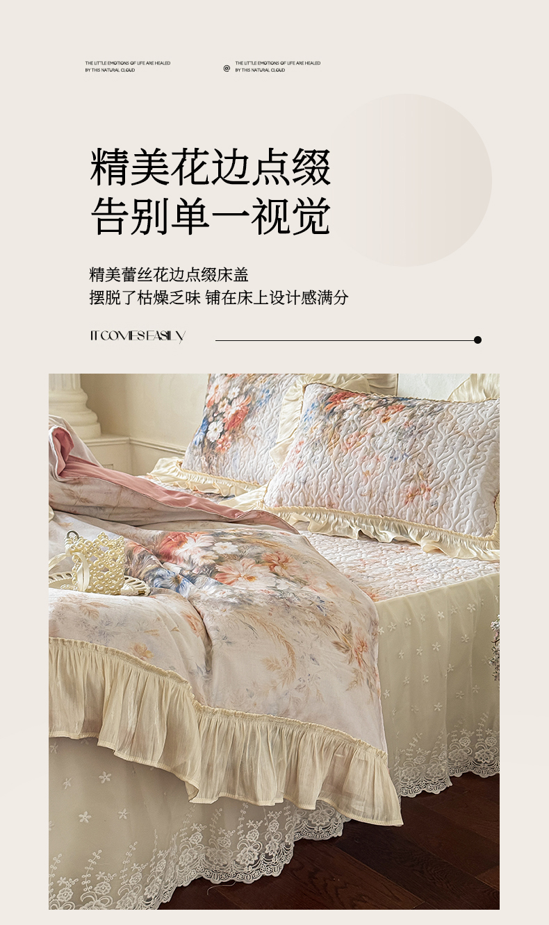 • 91家纺网 家纺一手货源 找家纺 花香四季家纺 2026新款全棉双层纱床裙三件套 半夏