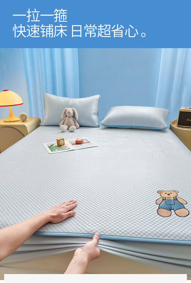 (总)雯豆家纺 2026新款夏季绣花三明治凉豆豆压花床笠三件套加厚床罩床垫保护套,背带熊床笠款-冰蓝,大耳朵兔床笠款-冰蓝,大耳朵兔床笠款-米黄,背带熊床笠款-银灰,大耳朵兔床笠款-蜜桃粉,背带熊床笠款-米黄,背带熊床笠款-苹果绿,背带熊床笠款-蜜桃粉,大耳朵兔床笠款-苹果绿,大耳朵兔床笠款-银灰