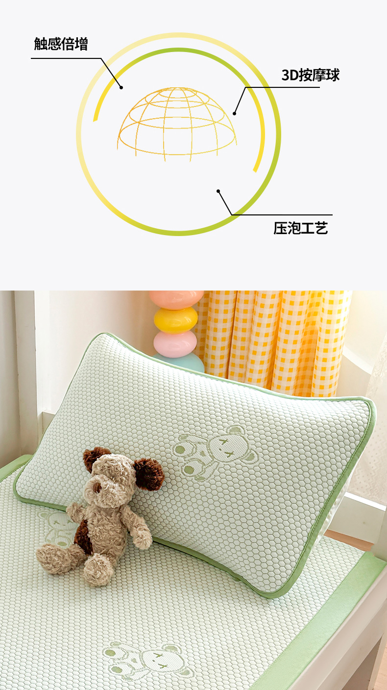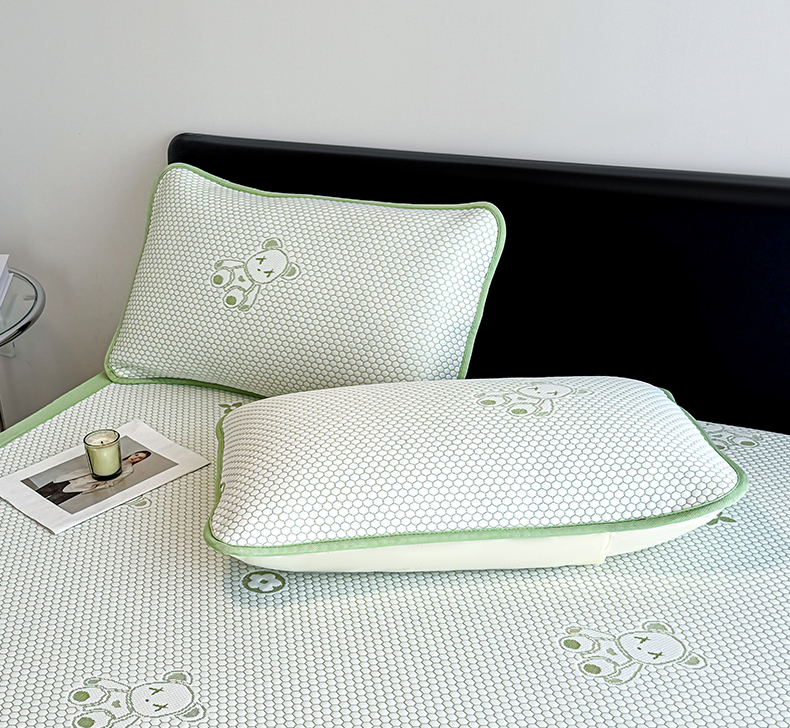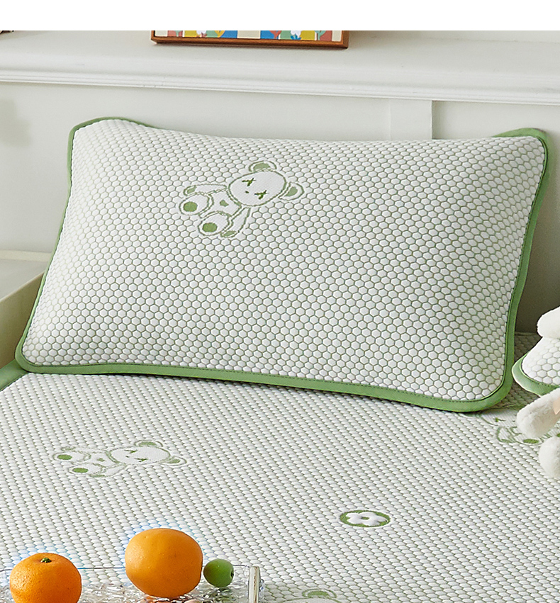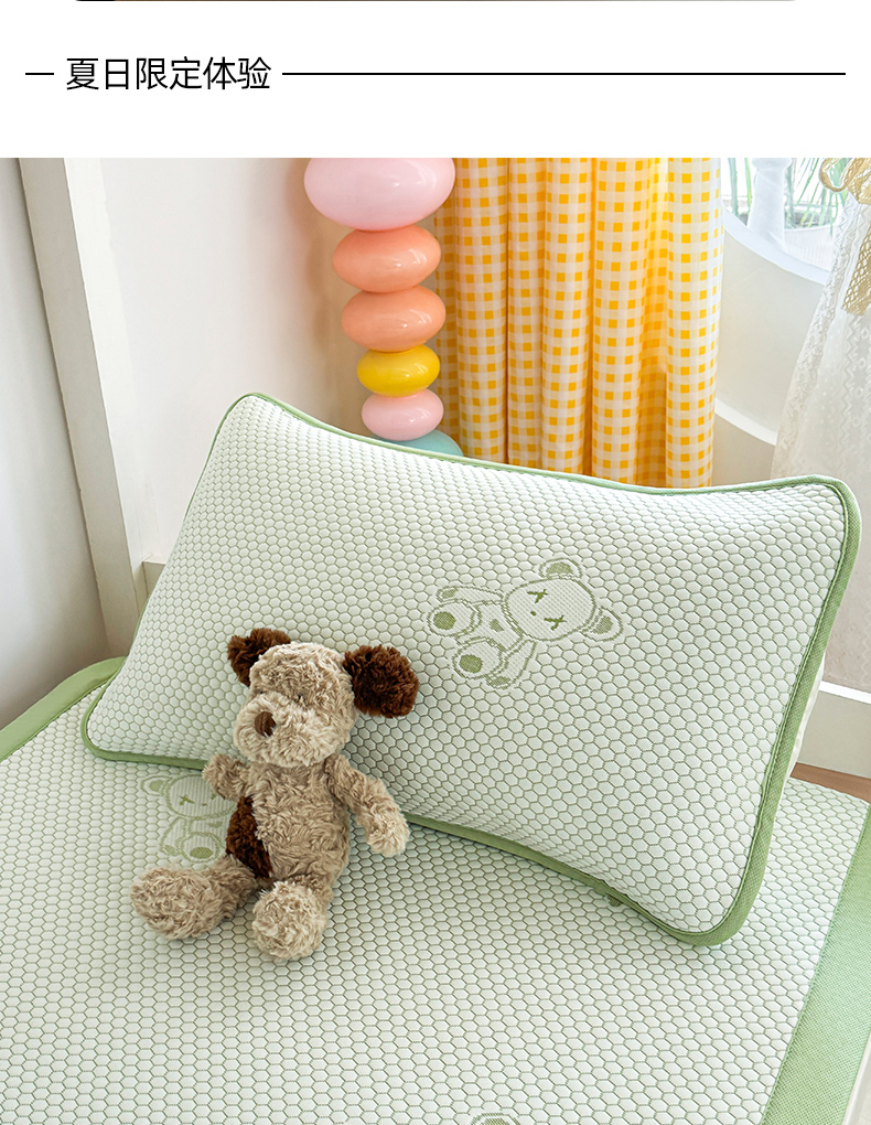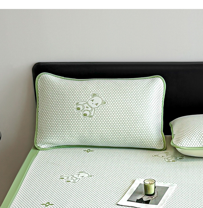 商品名称:奇丝雅 2026新款夏季A类卡通冰豆豆冰丝凉席枕套凉感家用可机洗单人学生宿舍48×74cm一只一对 抱抱熊-绿