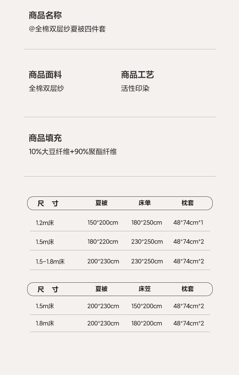 180*220cm夏被四件套