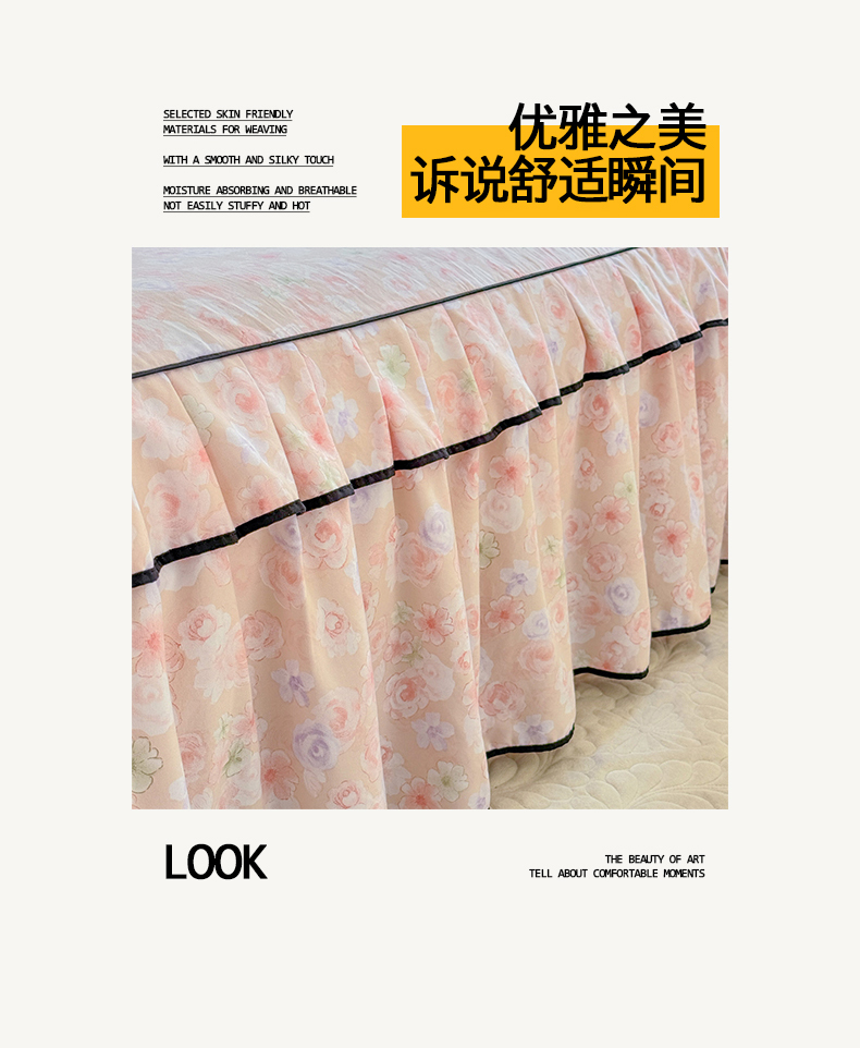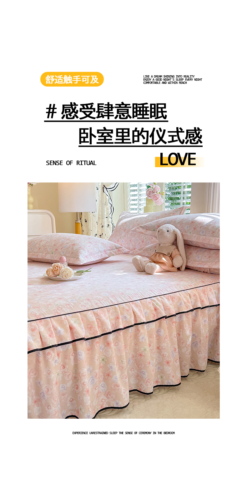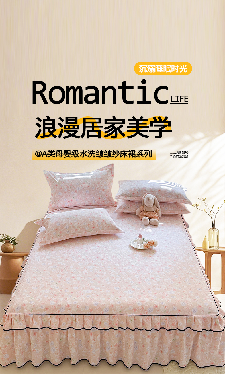 • 91家纺网 家纺一手货源 找家纺 优家居 2026新款A类水洗棉床裙单件三件套皱皱纱韩版公主风花边床罩直播爆款外贸定制 梦华录