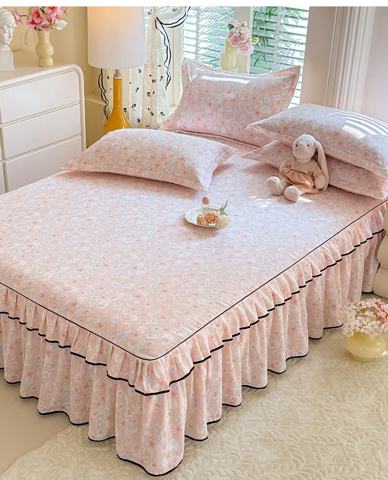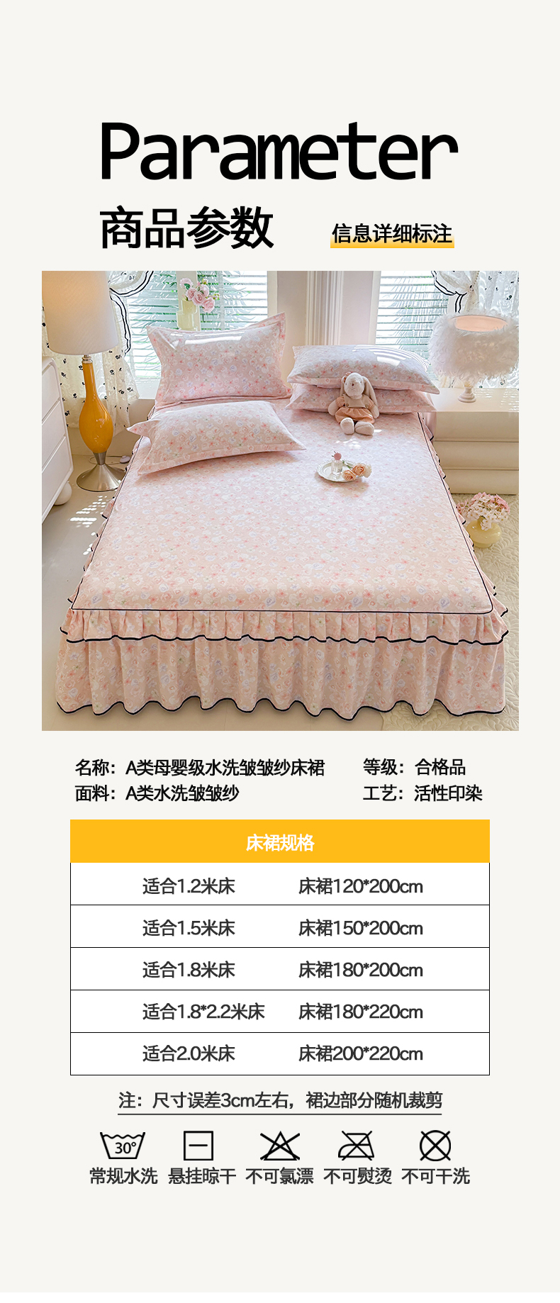 (总)优家居 2026新款A类水洗棉床裙单件三件套皱皱纱韩版公主风花边床罩直播爆款外贸定制,木槿花,一口葡萄,欧若拉,小苍蓝,梦华录,海棠花颂,爱心蝴蝶结,巴宝格-咖,豹纹-咖,蝶舞芳华,繁花似锦,粉色猫猫,粉雾结语,花花田园,莓好时光,秘园絮语,陌上花开,紫雾花园