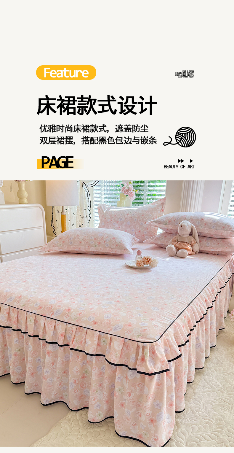 当前位置: 91家纺网 > 商品网购 > 床上用品 > 床裙 > 优家居 2026新款A类水洗棉床裙单件三件套皱皱纱韩版公主风花边床罩直播爆款外贸定制 梦华录