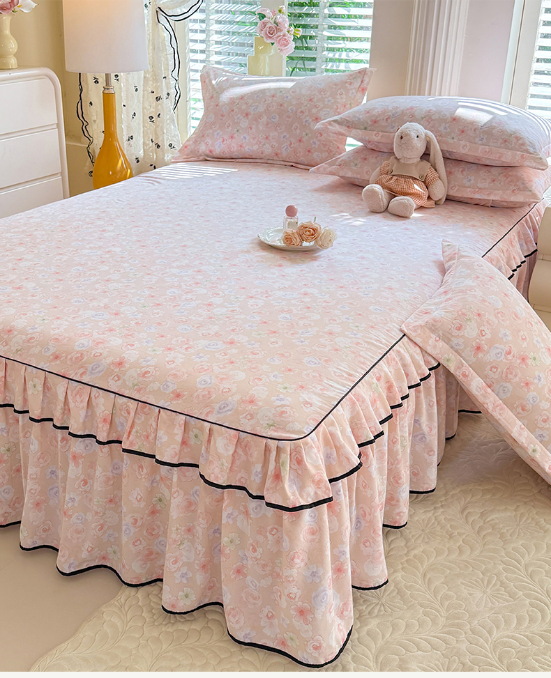(总)优家居 2026新款A类水洗棉床裙四件套皱皱纱韩版公主风花边床罩直播爆款外贸定制,木槿花,一口葡萄,欧若拉,小苍蓝,梦华录,海棠花颂,爱心蝴蝶结,巴宝格-咖,豹纹-咖,蝶舞芳华,繁花似锦,粉色猫猫,粉雾结语,花花田园,莓好时光,秘园絮语,陌上花开,紫雾花园