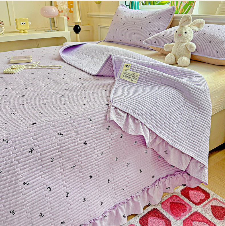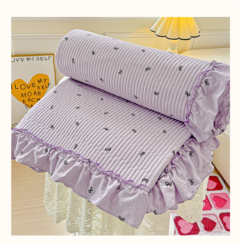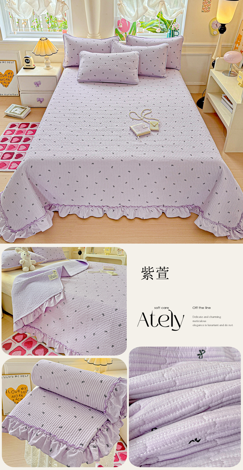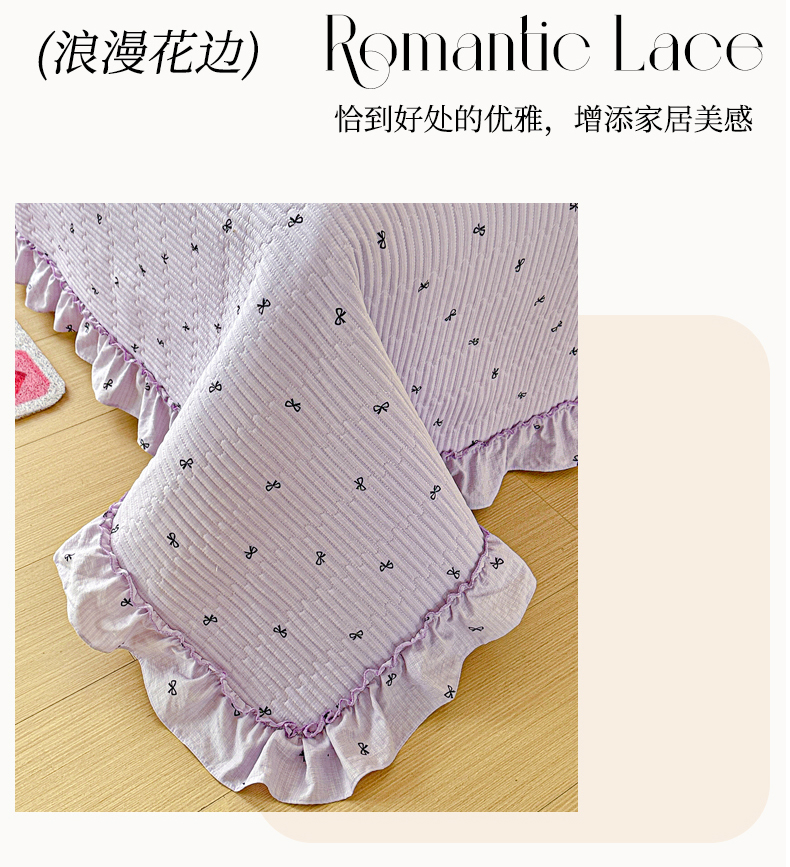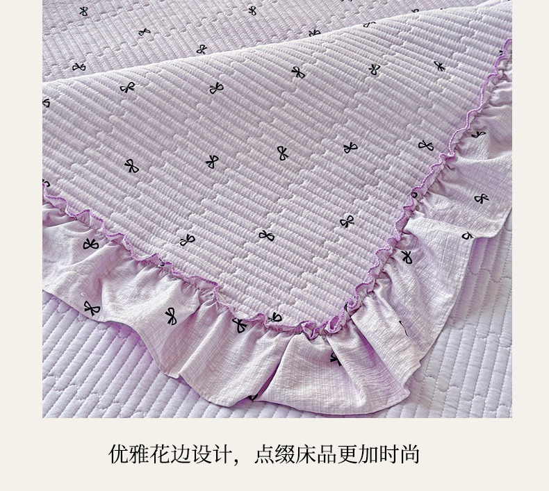 当前位置: 91家纺网 > 商品网购 > 床上用品 > 床盖 > 恒尚居 2026新款云感皱皱纱床盖花边床单双层纱床盖三件套-四季款 花边款-紫萱