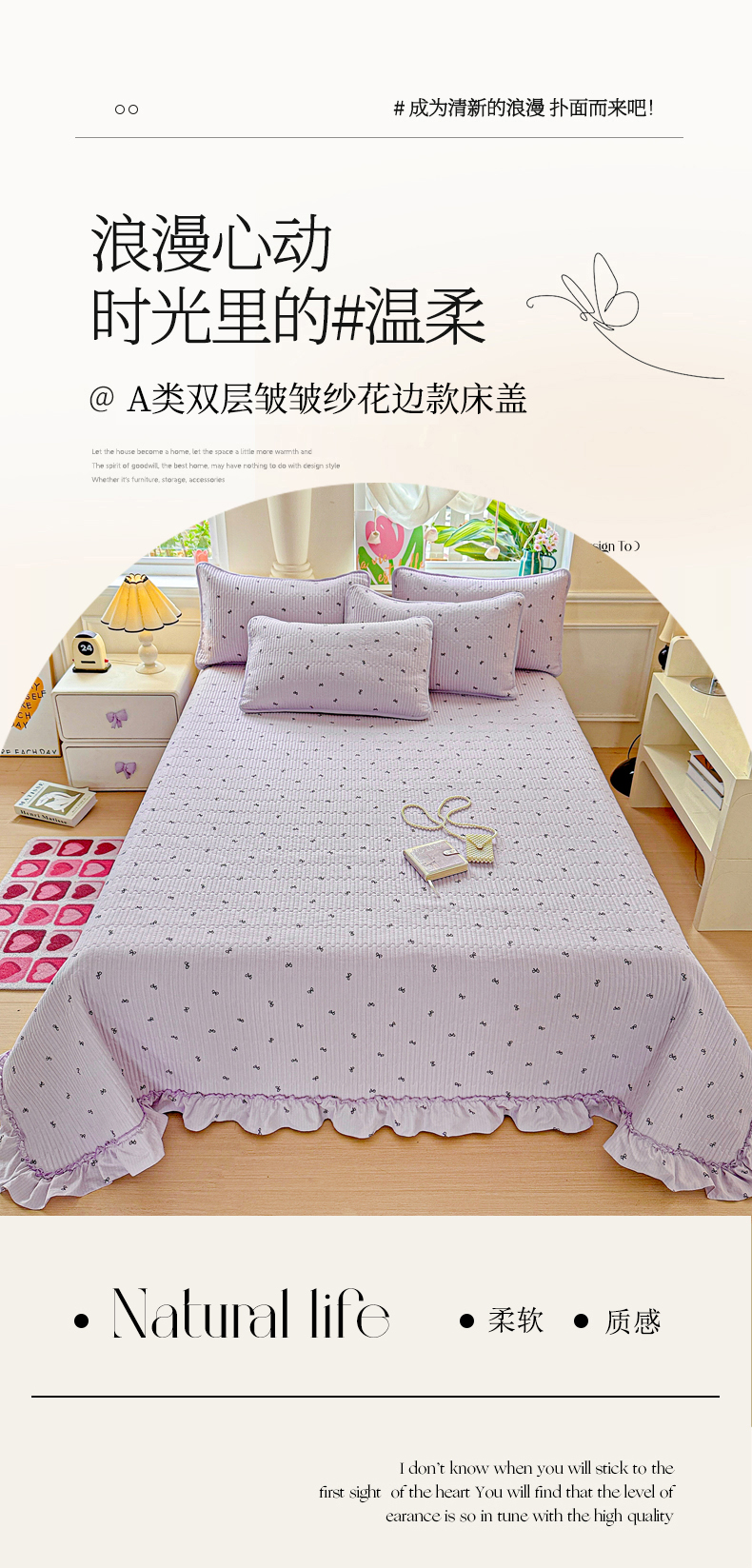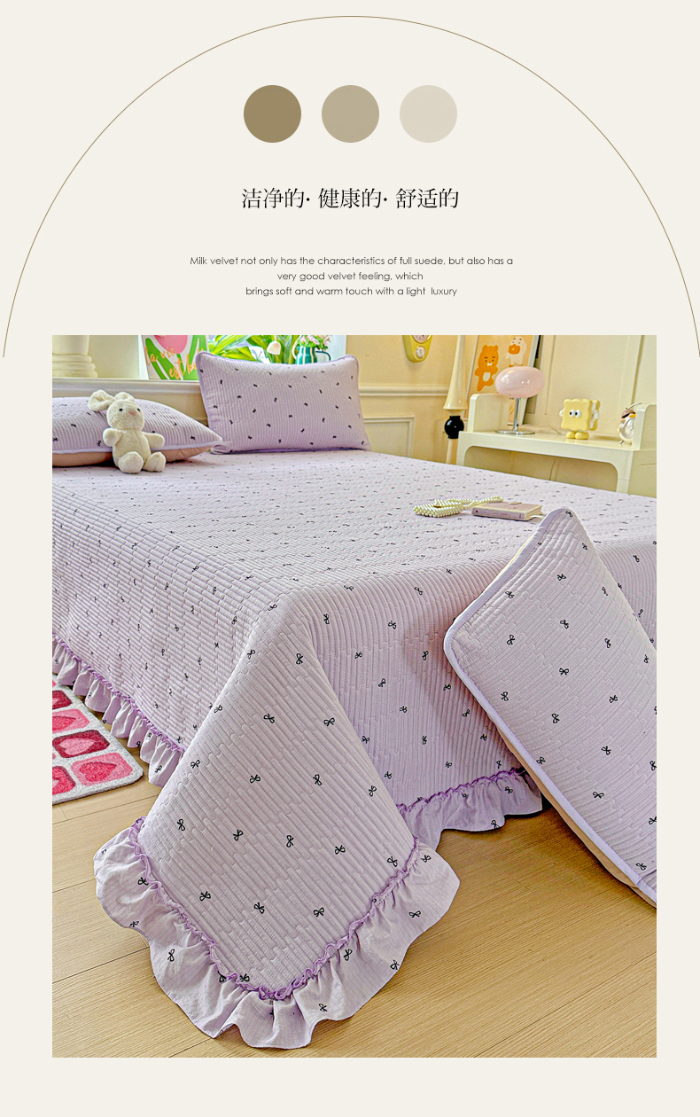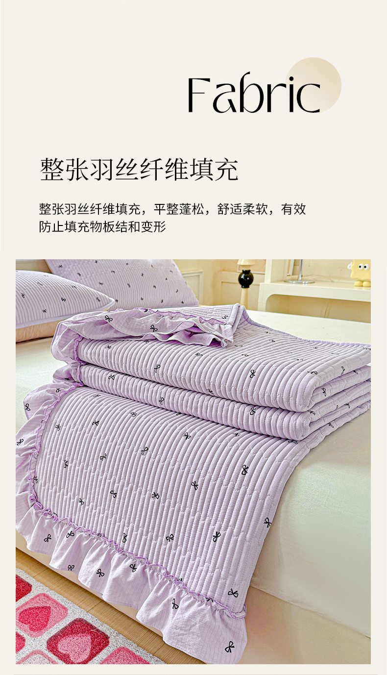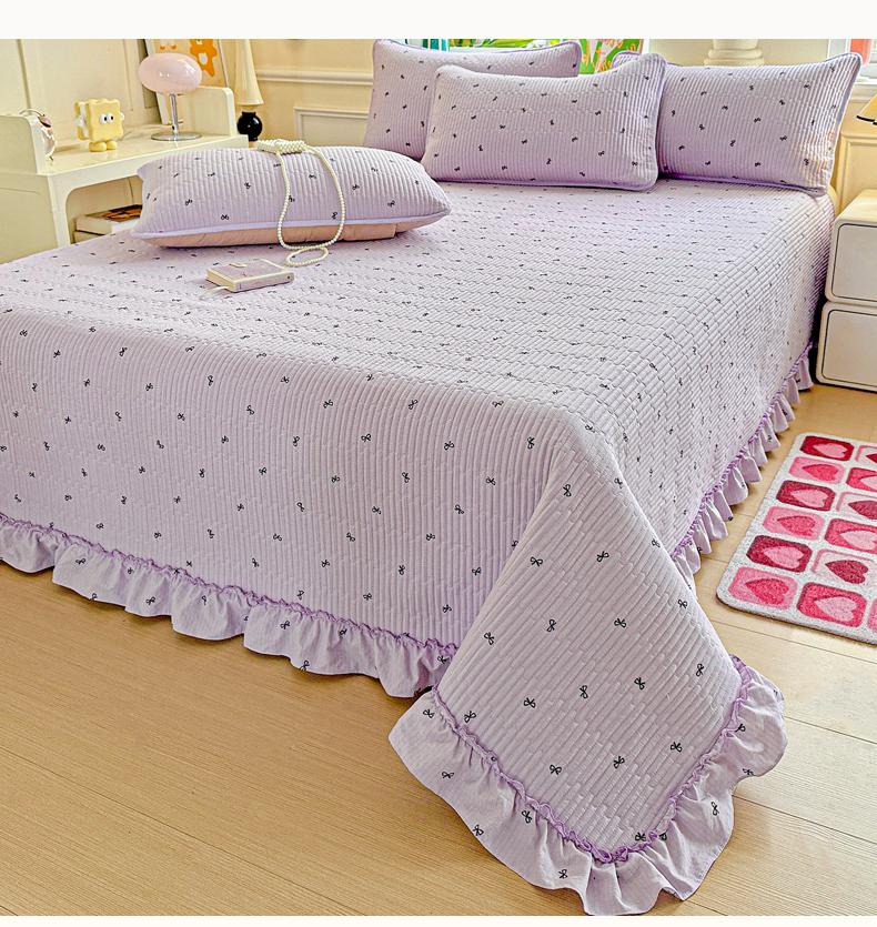 当前位置: 91家纺网 > 商品网购 > 床上用品 > 床盖 > 恒尚居 2026新款云感皱皱纱床盖花边床单双层纱床盖三件套-四季款 花边款-紫萱