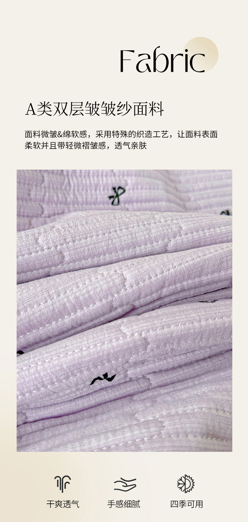 • 91家纺网 家纺一手货源 找家纺 恒尚居 2026新款云感皱皱纱床盖花边床单双层纱床盖三件套-四季款 花边款-紫萱