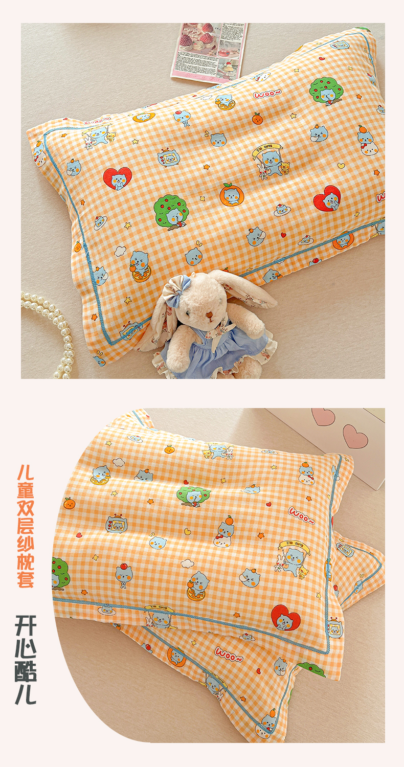 商品名称:百寐 2026新款母婴A类双层棉纱枕套婴幼儿卡通宝宝枕套子母信封枕套 开心酷儿