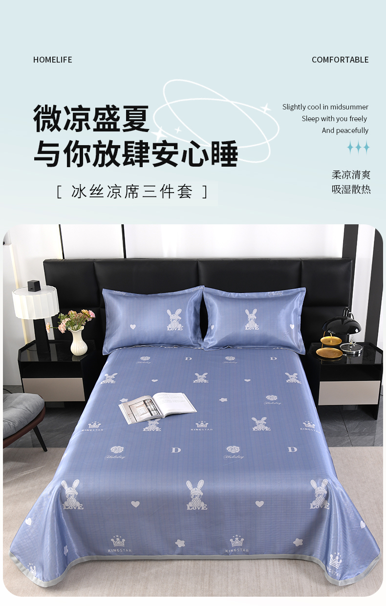 绒品壹家家纺 2026新款立体数码印花凉感丝冰丝席软凉席席子三件套 暴力兔