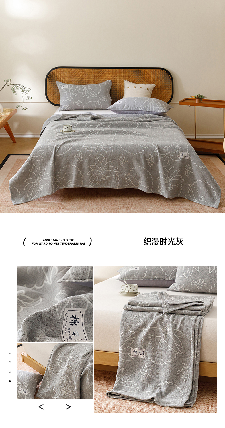 商品名称:(总)悦然毛巾被 2026新款素色提花全棉三层纱盖毯毛巾被A类休闲毯
