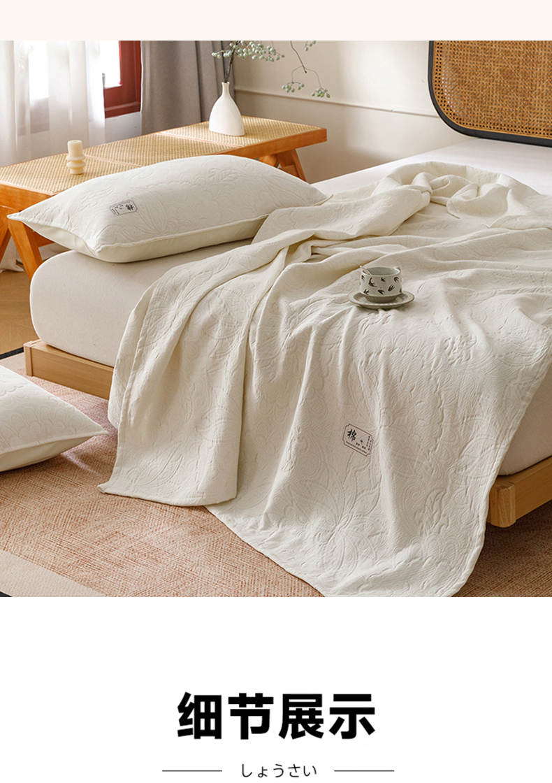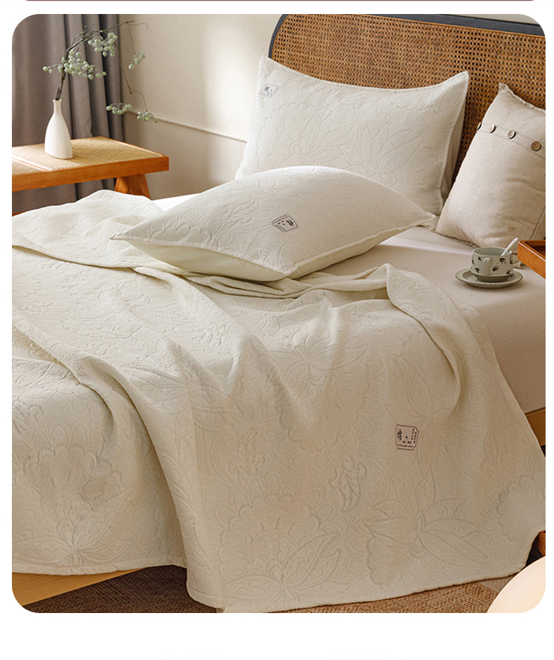 悦然毛巾被 2026新款素色提花全棉三层纱盖毯毛巾被A类休闲毯 织漫时光白