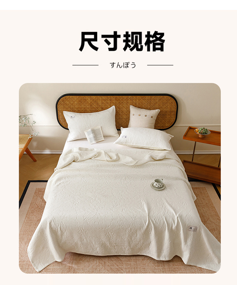 商品名称:悦然毛巾被 2026新款素色提花全棉三层纱盖毯毛巾被A类休闲毯 织漫时光白
