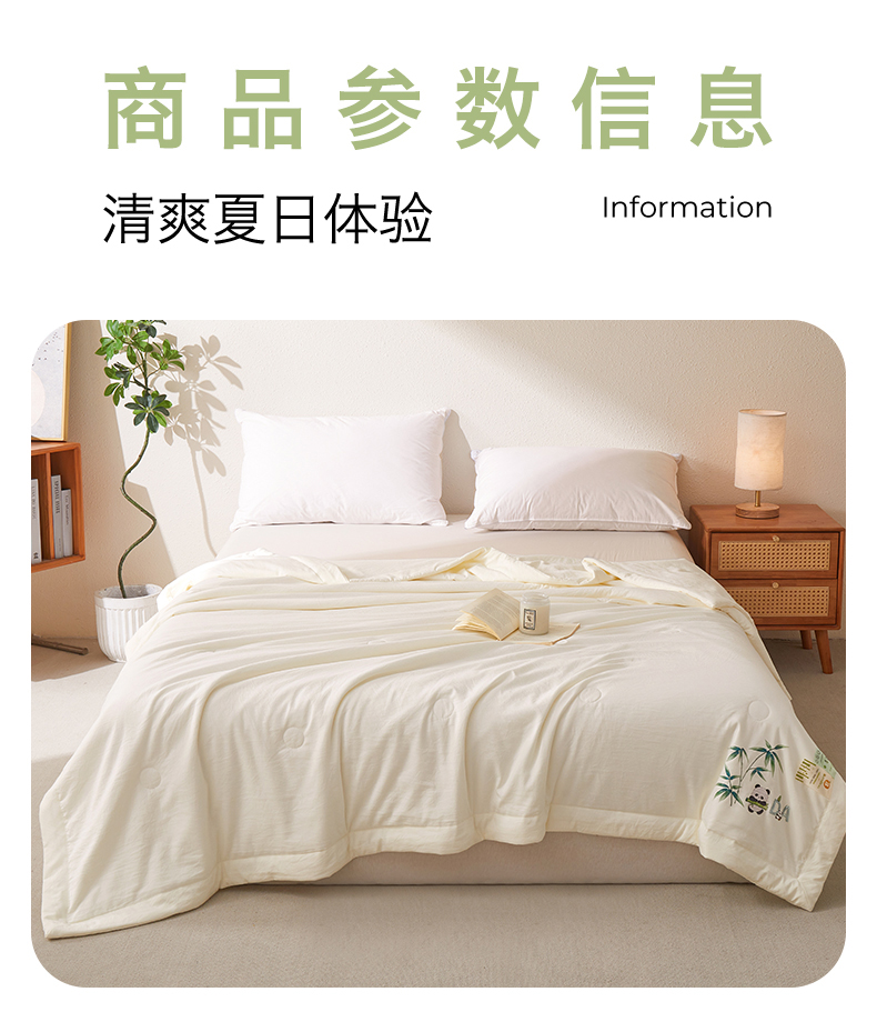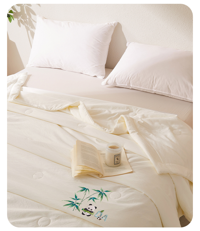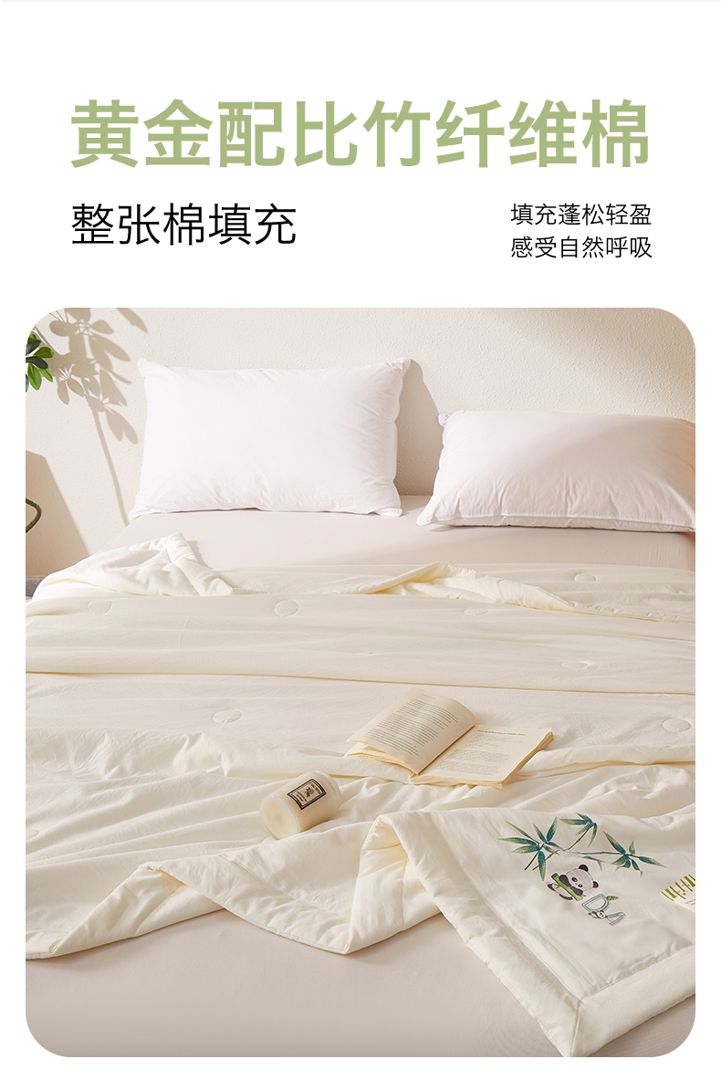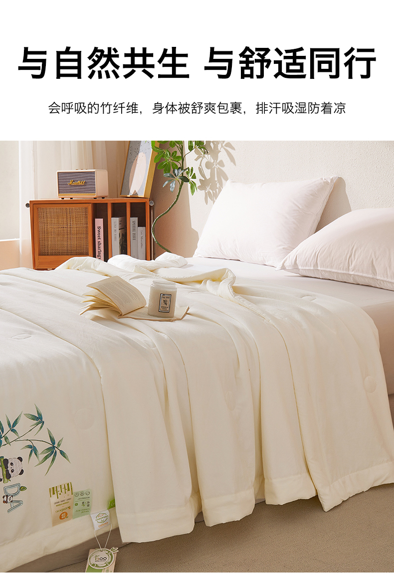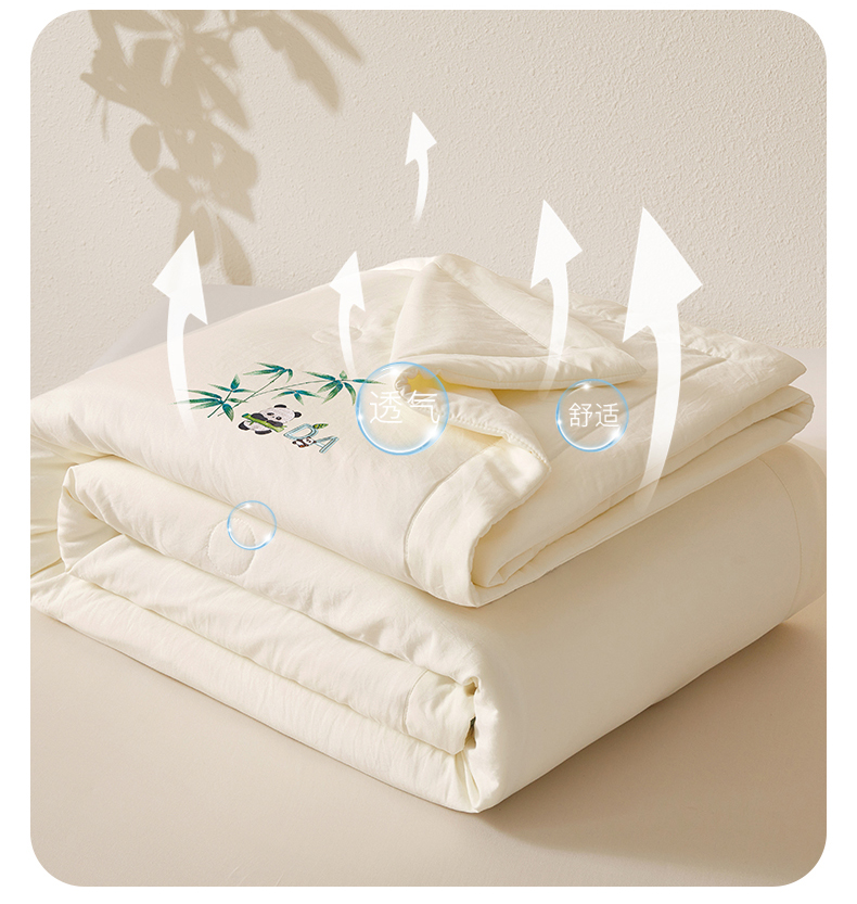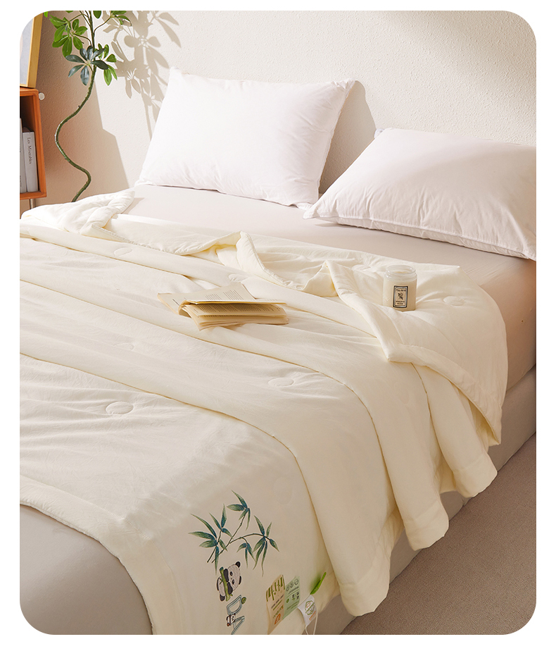 商品名称:招财星家纺 2026新款A类凉感竹纤维夏被空调被可机洗水洗夏被单人宿舍薄款被子(带质检报告买家秀) 熊猫-本白