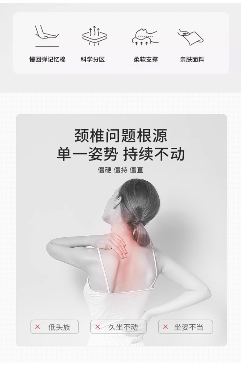 商品名称:七夜居 2026新款牵引枕记忆枕芯凉感零压深睡按摩枕芯枕头 牵引枕-灰白