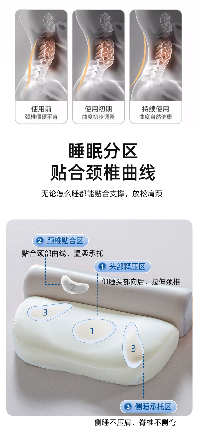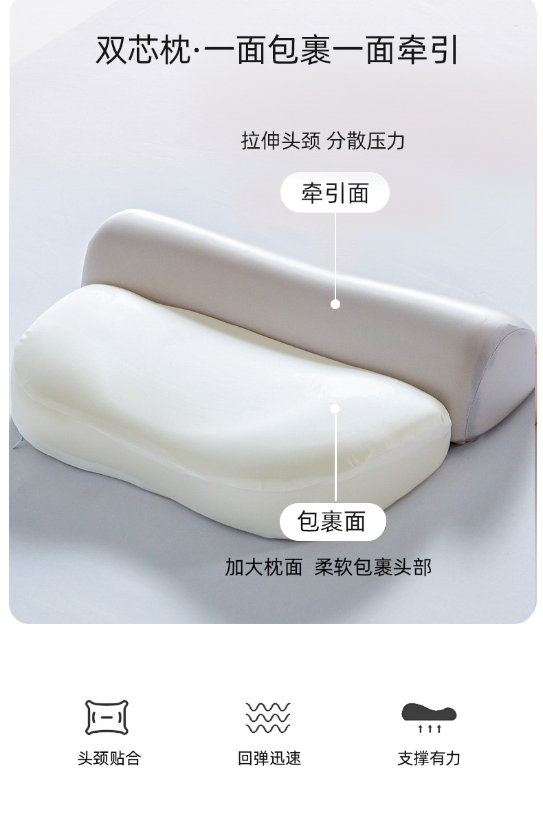 (总)七夜居 2026新款牵引枕记忆枕芯凉感零压深睡按摩枕芯枕头,牵引枕-白玉,牵引枕-灰白