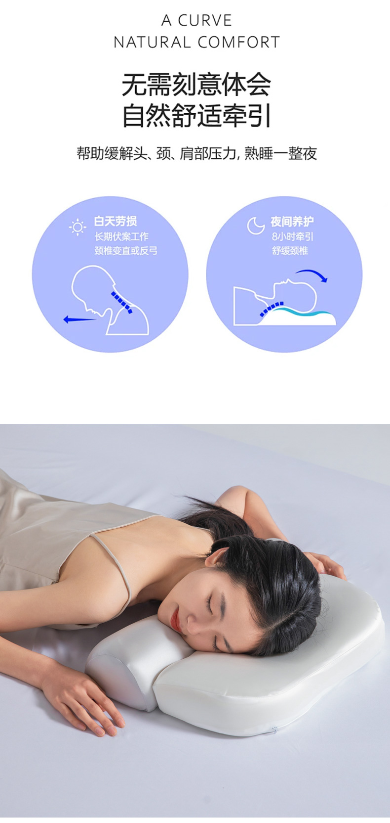 七夜居 2026新款牵引枕记忆枕芯凉感零压深睡按摩枕芯枕头 牵引枕-灰白