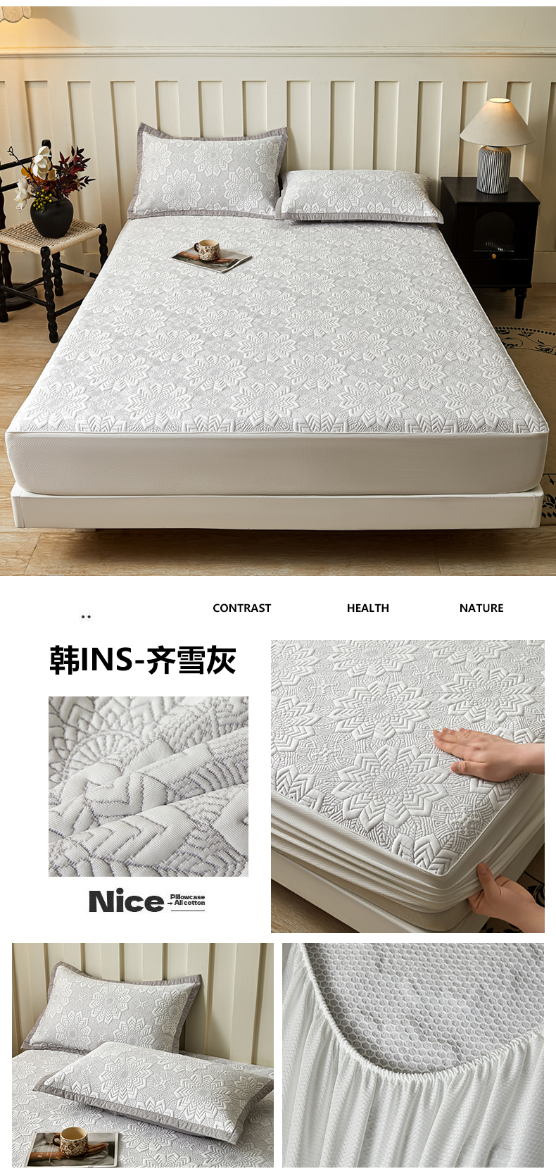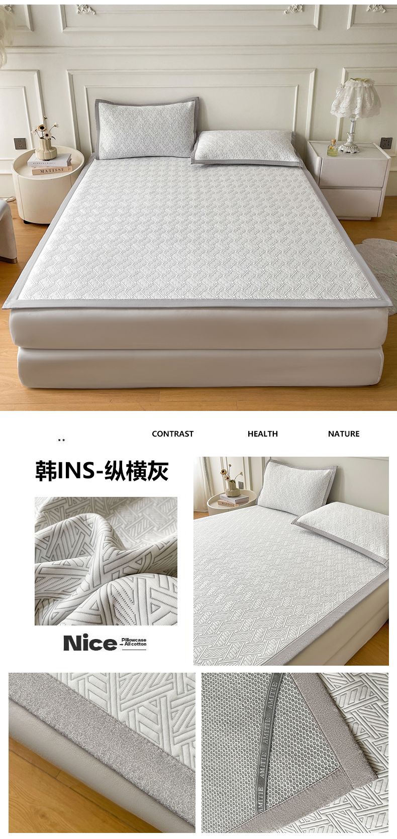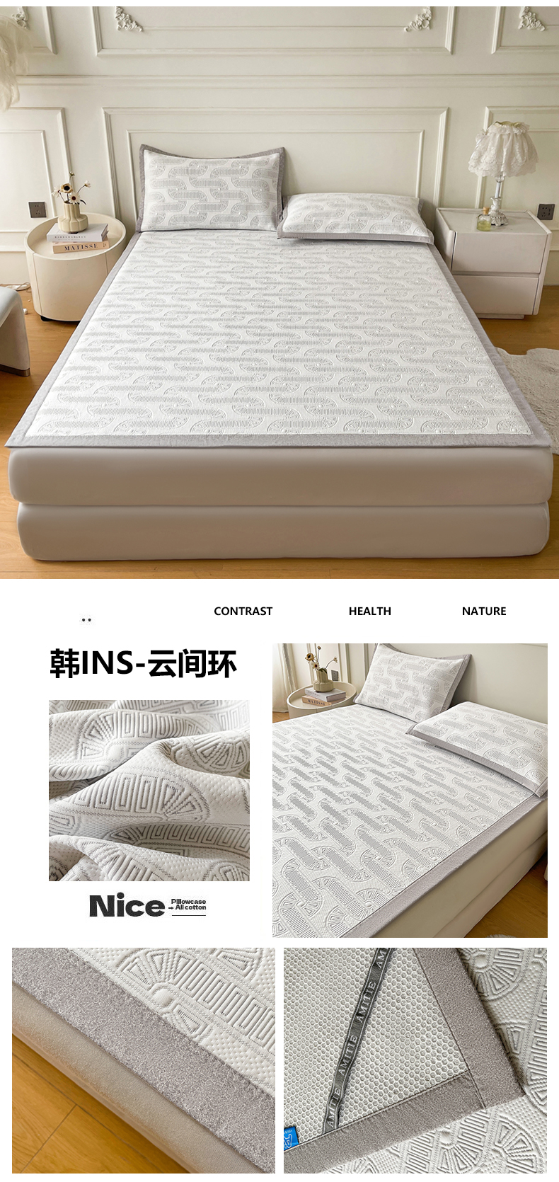 当前位置: 91家纺网 > 商品网购 > 床上用品 > 凉席 > 其他凉席 > 慕木家纺 2026新款高端三明治硅胶复合PE100%乙纶提花冰豆豆凉席空调席韩版INS系列(提供买家秀) 韩INS-方圆灰床笠款
