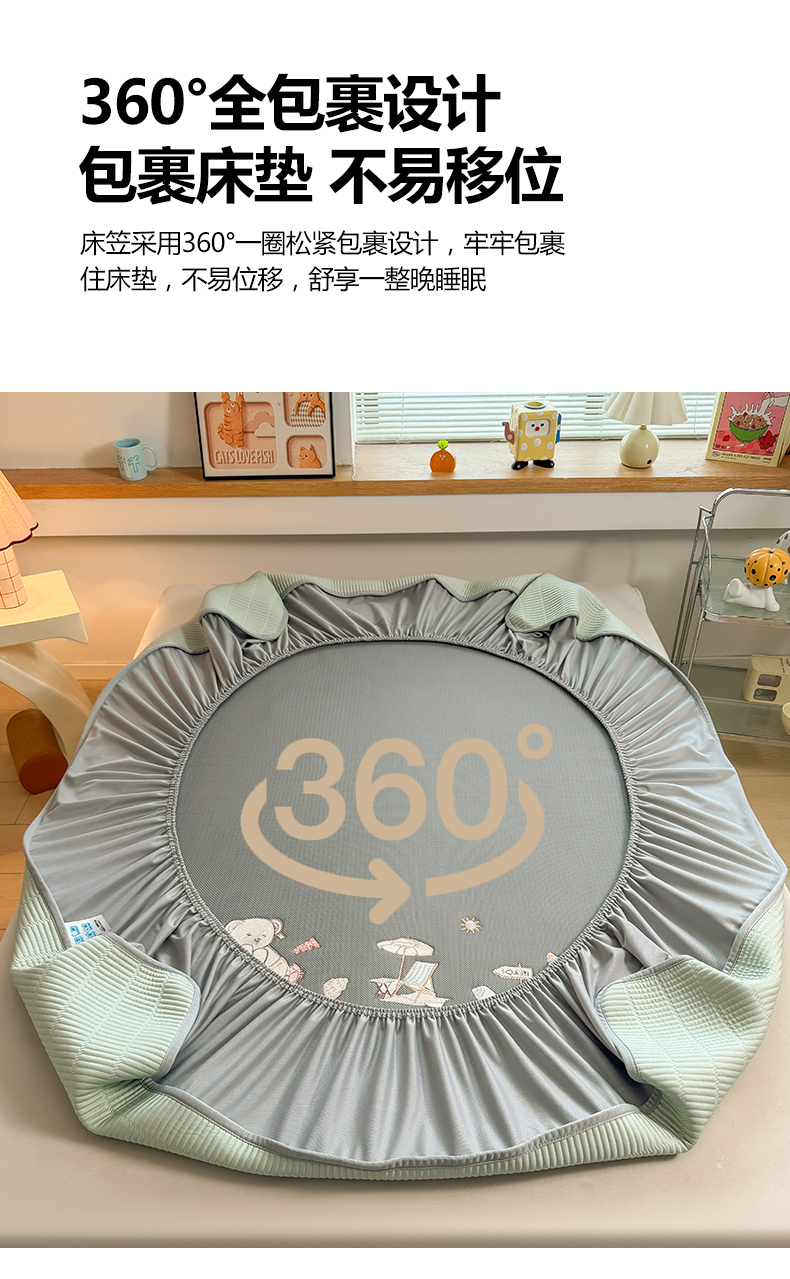 当前位置: 91家纺网 > 商品网购 > 床上用品 > 凉席 > 其他凉席 > 耐思家纺 2026新款A类高端刺绣pe乙纶冰豆豆席爱兰系列正版授权(提供买家秀)床笠款 青屿熊语-绿