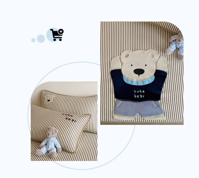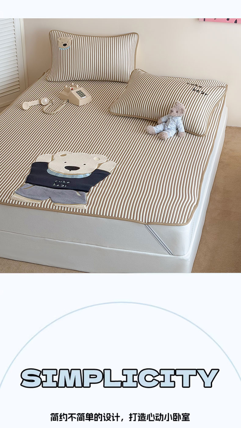 • 91家纺网 家纺一手货源 找家纺 桃子家居 2026新款A类PE凉感卡通贴布绣高端工艺空调软席床席床笠凉席三件套 PE贴布绣-清新熊