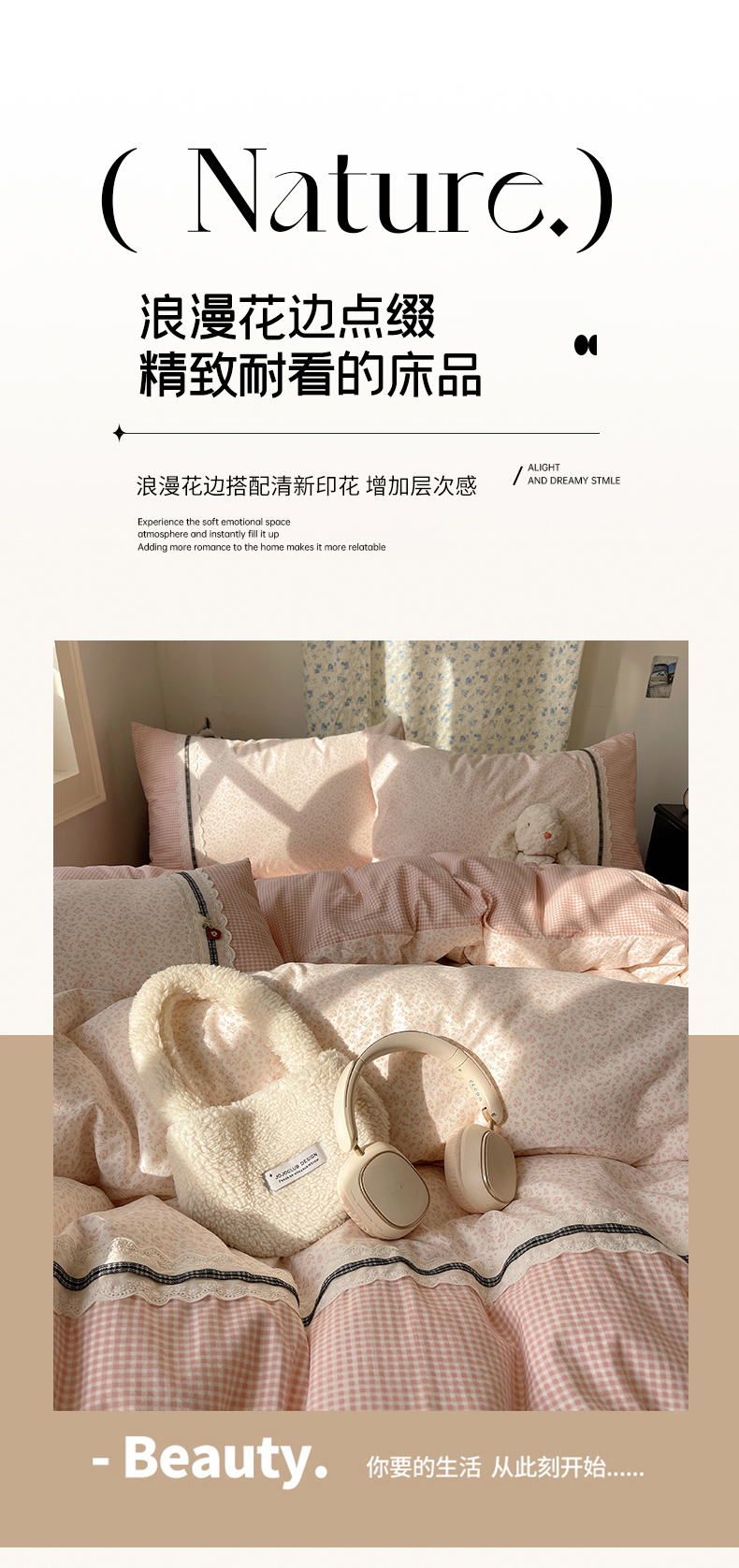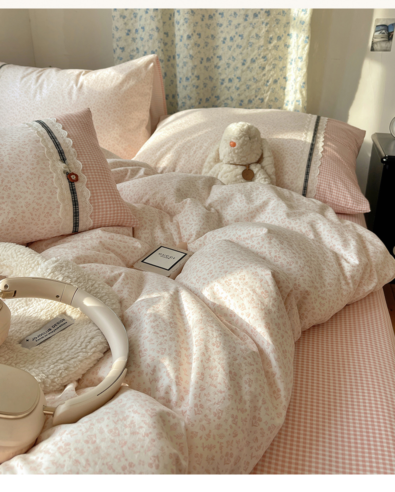 商品名称:栩裕纺织 2026新款仿棉水洗棉四件套 花漾格调-嫩粉