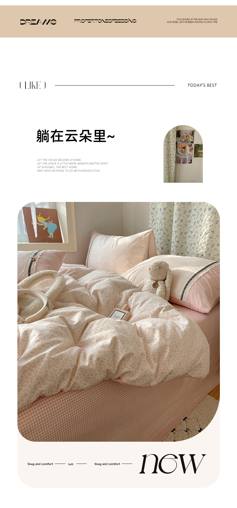 (总)栩裕纺织 2026新款仿棉水洗棉四件套,花漾格调-嫩粉,花漾格调-卡其,花漾格调-浅绿,花漾格调-浅紫,花漾格调-雾蓝