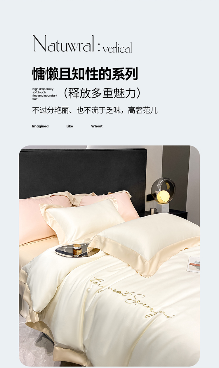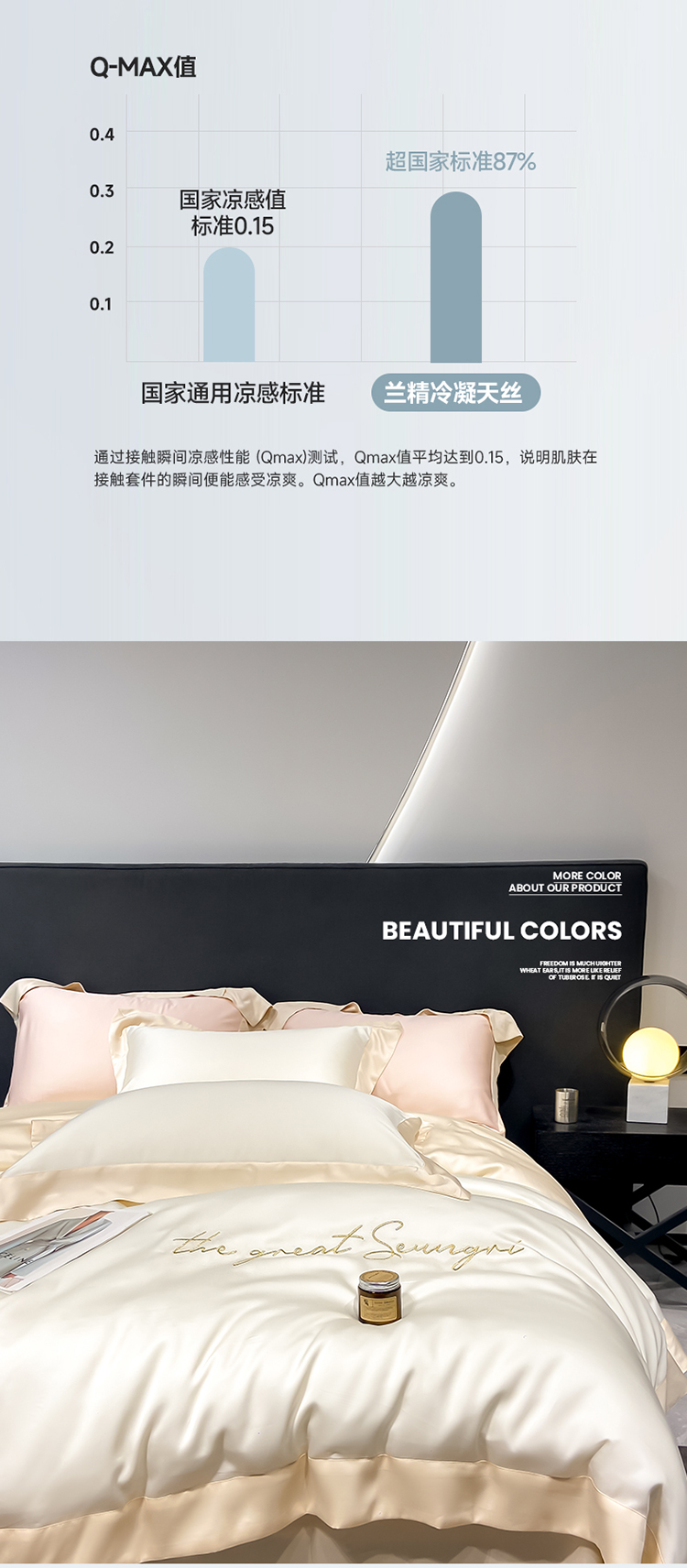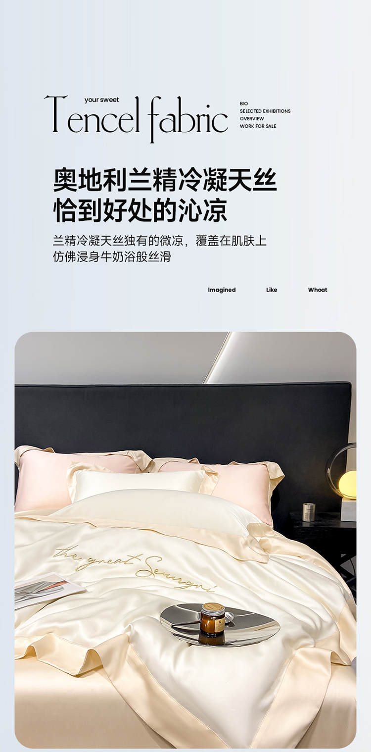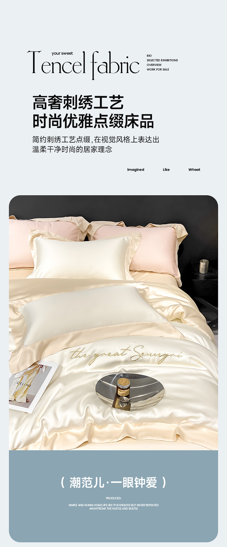 当前位置: 91家纺网 > 商品网购 > 床品套件 > 四件套 > 莱赛尔四件套 > 高档礼盒装春夏新品超细旦冷凝天丝刺绣四件套100%莱赛尔 白金-缦悦-A类超细旦冷凝天丝