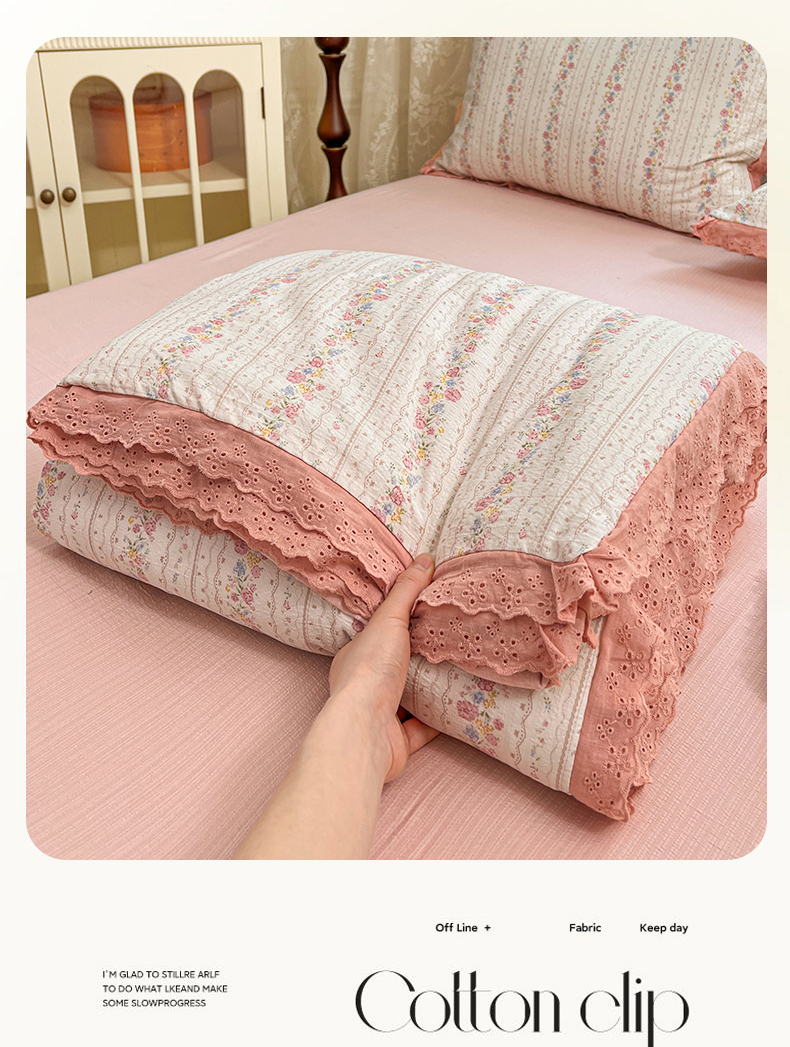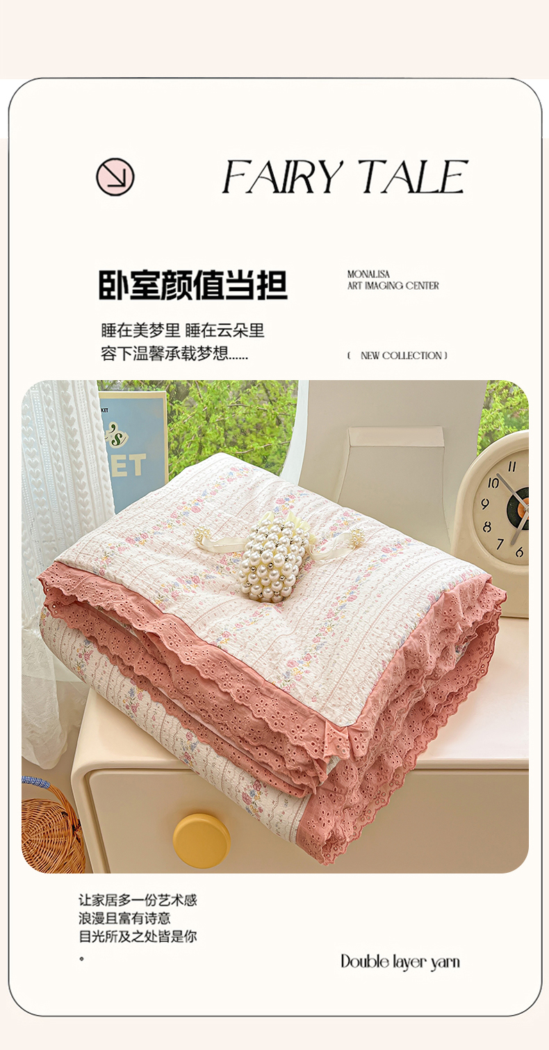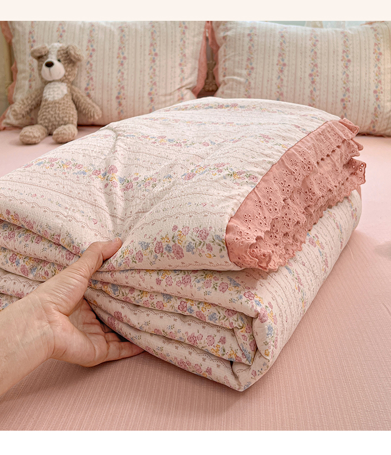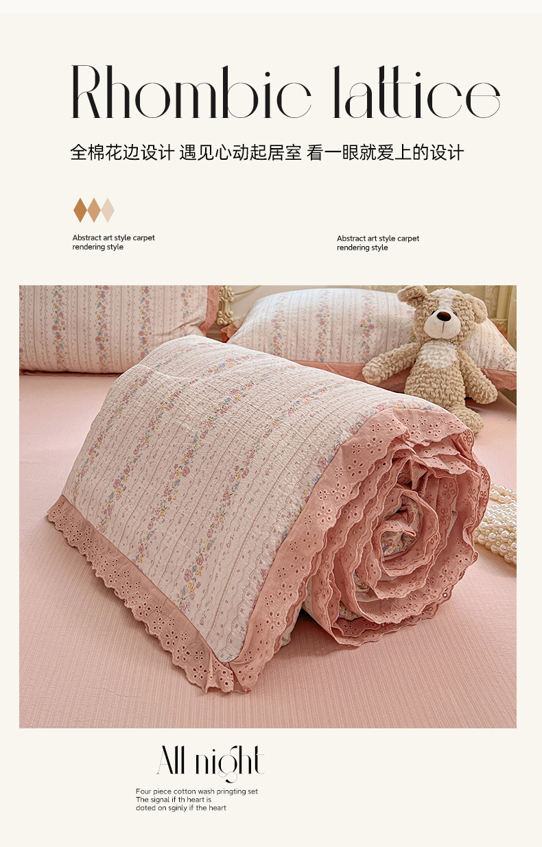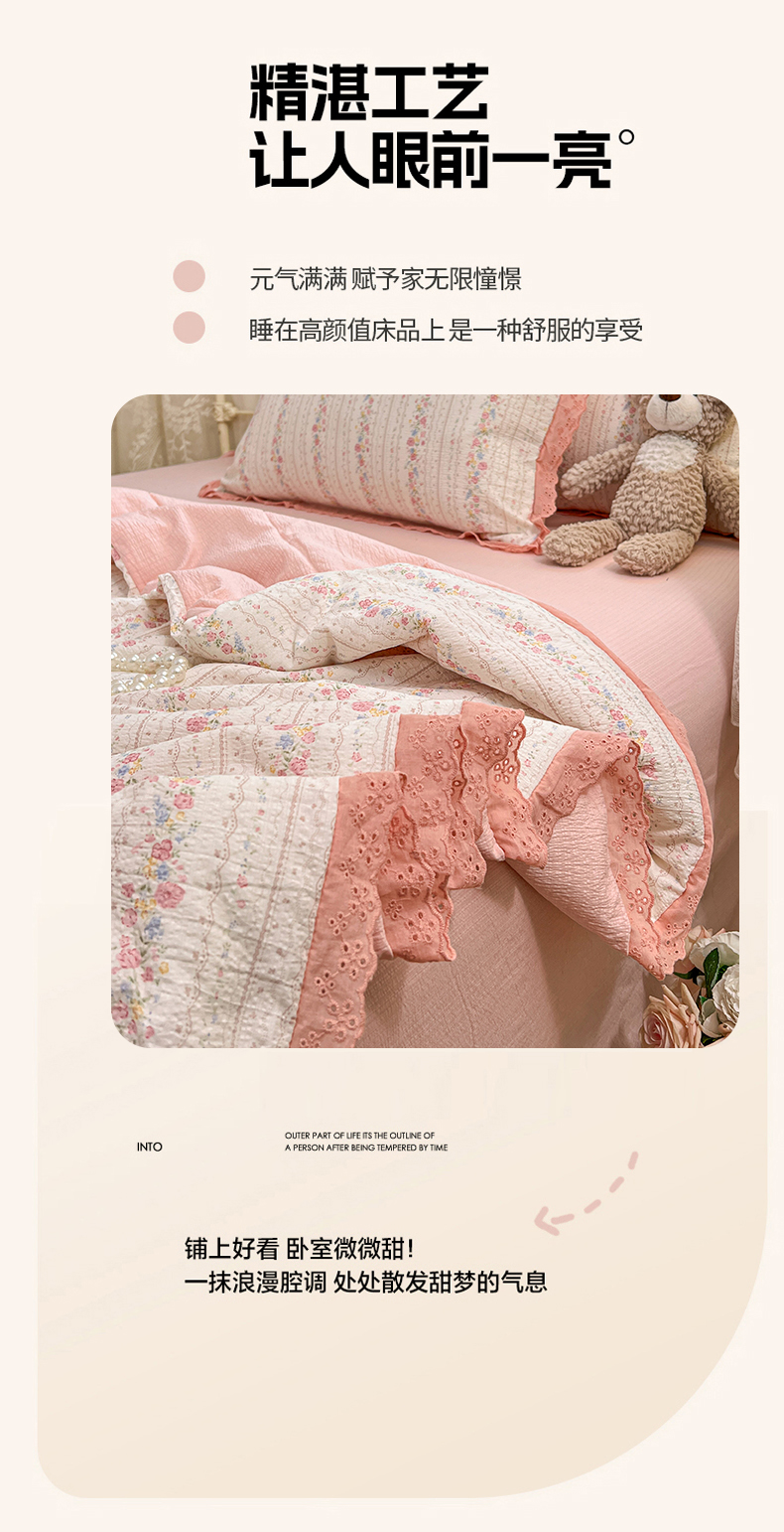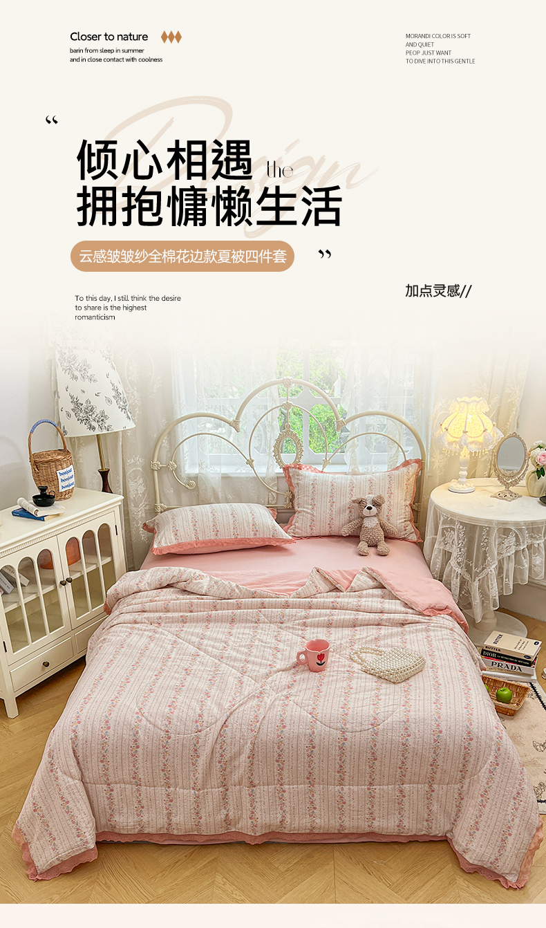 优尚佳生活馆 2026新款云感皱皱纱全棉花边款夏被四件套 扶摇