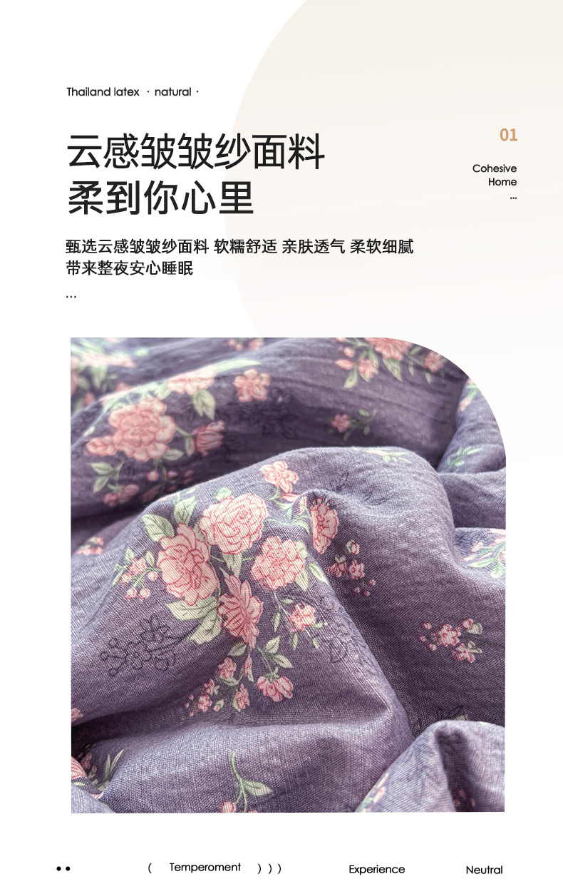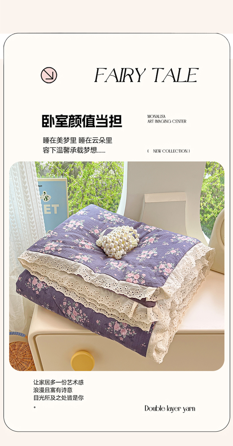 商品名称:优佳优品 2026新款云感皱皱纱全棉花边款夏被四件套 暗香
