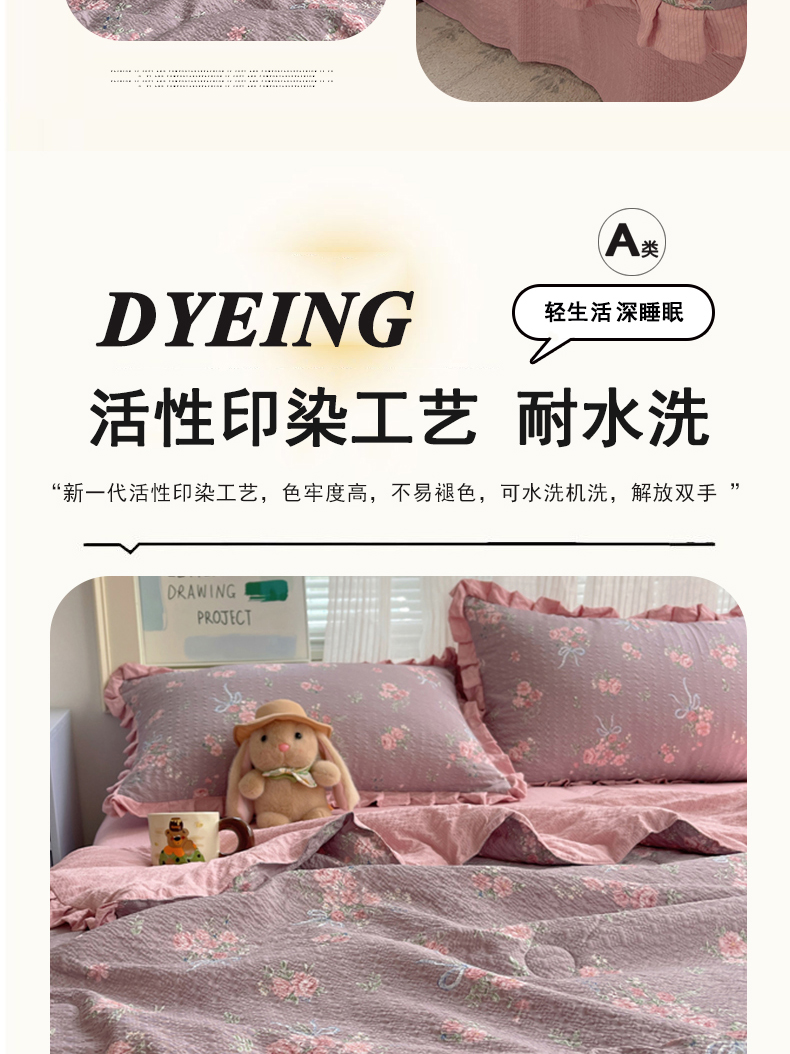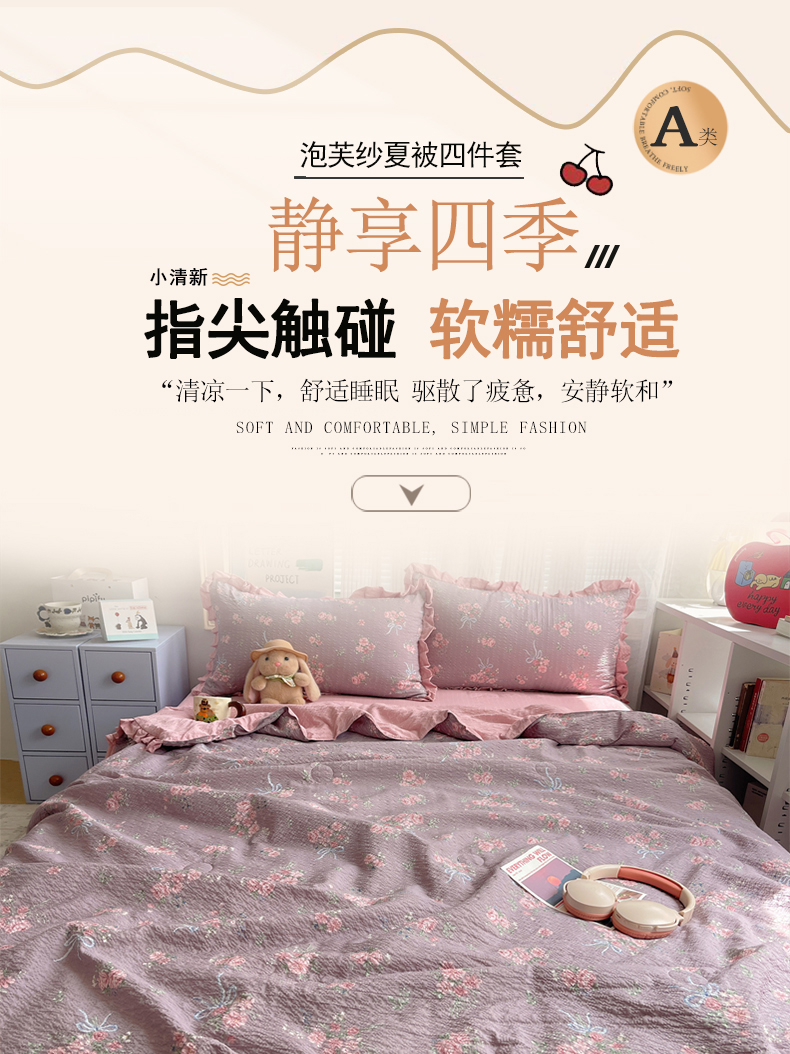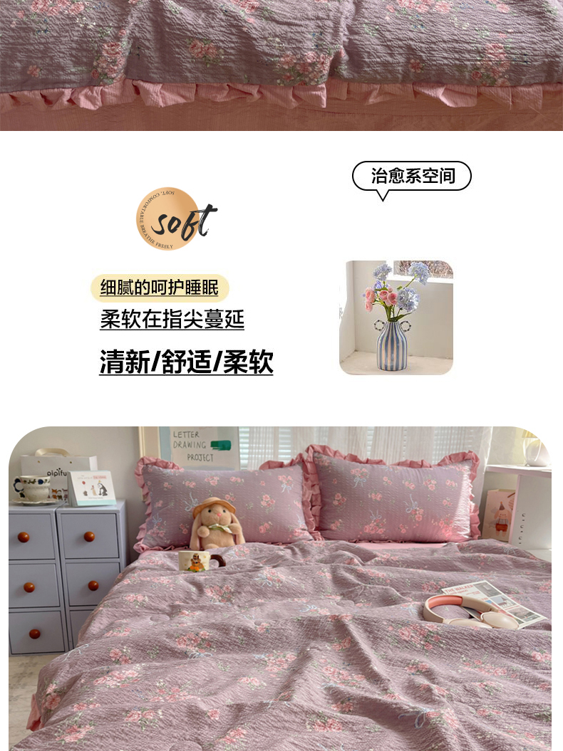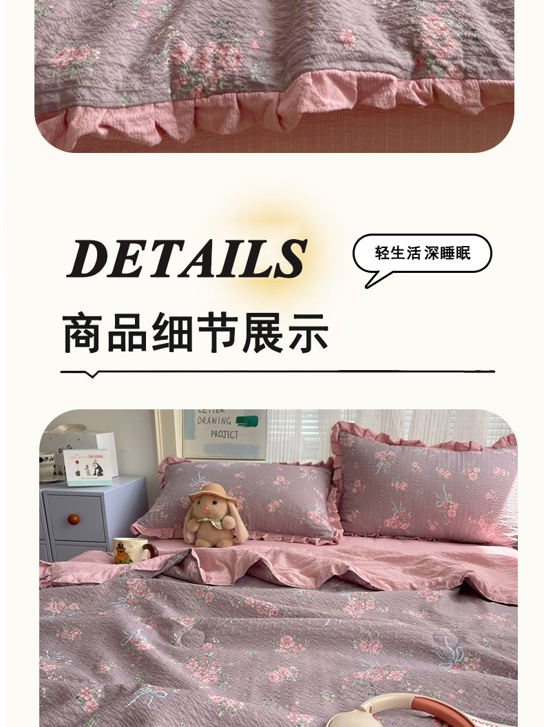 (总)迪梦姿家纺 2026新款泡芙纱花边款夏被四件套,纯宅熊,躲猫猫,旧街星星,可可小猫条,栗色木马纹,满堂红樱花粉,萌物条条,浅夏花信,田园兔,甜喵块块,甜心咖絮,甜心木马卷,兔仔花田,小兔裙边,悦悦小兔,只闻花香,紫雾花蝶集